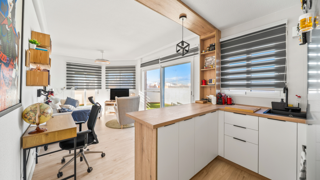 Renoverad hörntakvåning med havsutsikt i La Mata.