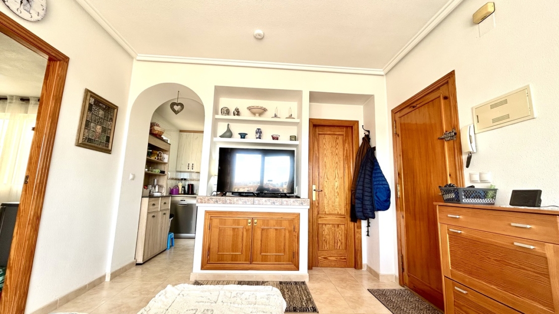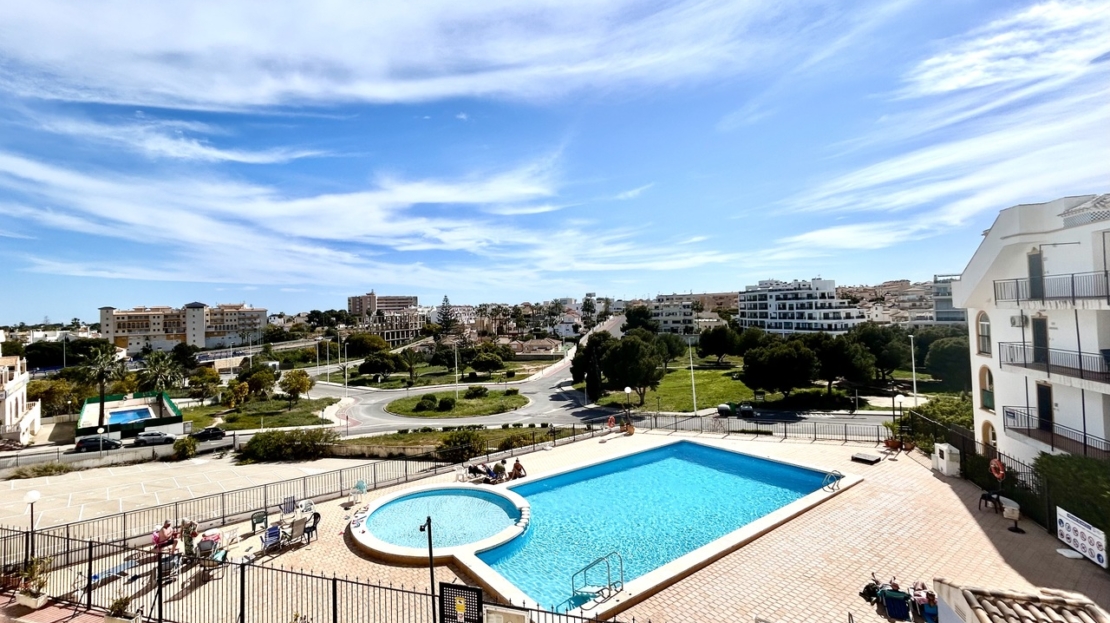 This beautifully presented south-facing penthouse is located in the highly desirable Molino Blanco urbanisation, in the heart of La Zenia. Enjoying an elevated position overlooking the communal pool, the property offers both privacy and attractive open views within a well-maintained residential setting.The apartment features 3 spacious bedrooms and 2 modern bathrooms, with a bright and airy living area that benefits from its south-facing orientation, filling the home with natural light throughout the day. A generous terrace provides the perfect space for outdoor dining and relaxing while enjoying views over the landscaped gardens and pool.One of the standout features of this property is its private rooftop solarium, offering additional outdoor living space ideal for sunbathing, entertaining, or simply enjoying the Mediterranean climate in complete privacy.The location is exceptional — just a few steps from a wide selection of bars, restaurants, and local shops, with the popular La Zenia Boulevard only a short walk away. The sandy shores of La Zenia Beach are also within easy walking distance, making this an ideal home for both holidays and year-round living.Whether you’re seeking a permanent residence, a holiday getaway, or a strong rental investment, this penthouse offers space, sunshine, and an unbeatable location in one of the most sought-after areas of the Costa Blanca.
