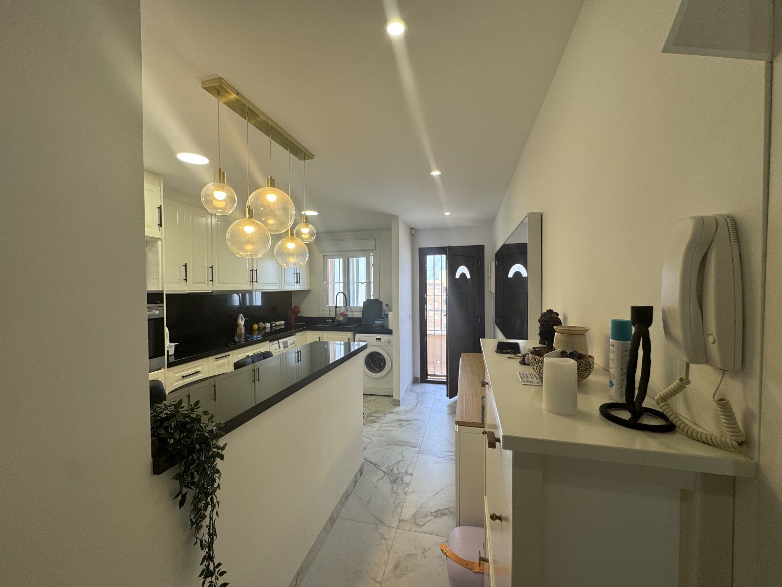 Renoverat öppet kök med vitvaror