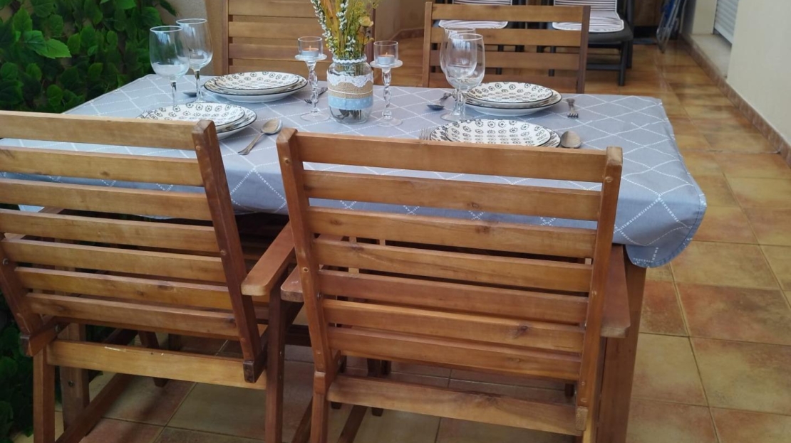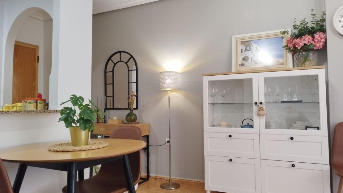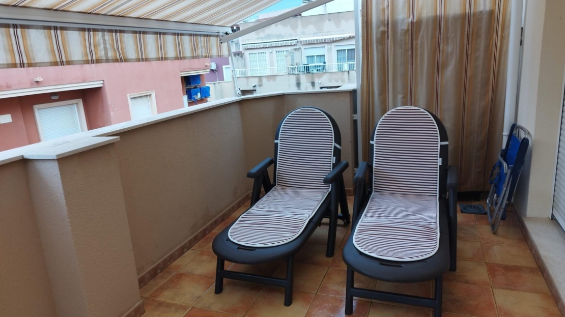 Upptäck denna vackra takvåningslägenhet belägen i det exklusiva området La Mata, endast 100 meter från den fantastiska stranden La Mata, känd för sitt kristallklara vatten och lugna atmosfär. Ett perfekt läge för att njuta av havet och ha alla nödvändiga bekvämligheter — butiker, restauranger, transport och stormarknader — alldeles runt hörnet. Bostaden har ett rymligt och ljust vardagsrum med matplats och direkt tillgång till ett fullt utrustat kök i fransk stil. Den erbjuder två stora sovrum, perfekta för avkoppling, samt ett totalrenoverat badrum med modern dusch. Höjdpunkten i denna takvåning är den fantastiska sydvända terrassen på 20 m², som garanterar sol hela dagen och erbjuder en perfekt plats för avkoppling, måltider utomhus eller helt enkelt för att njuta av den vackra utsikten. Ett unikt tillfälle att bo vid havet i ett av Torreviejas mest eftertraktade områden.