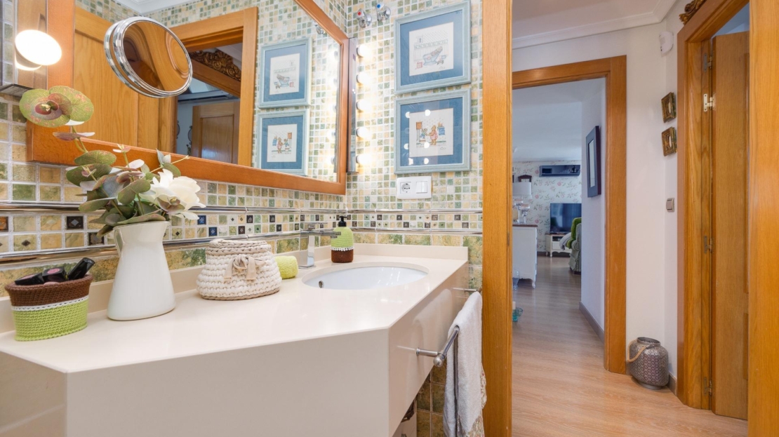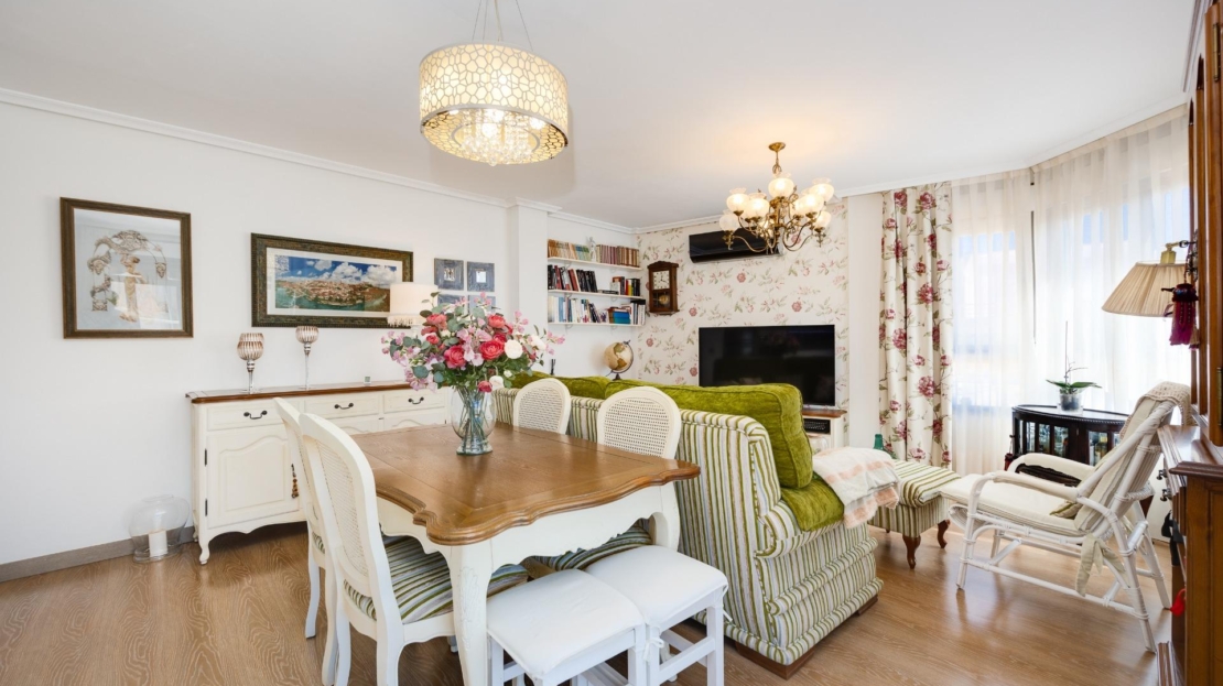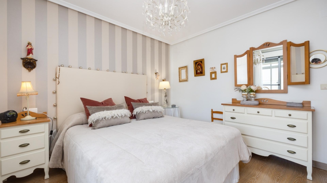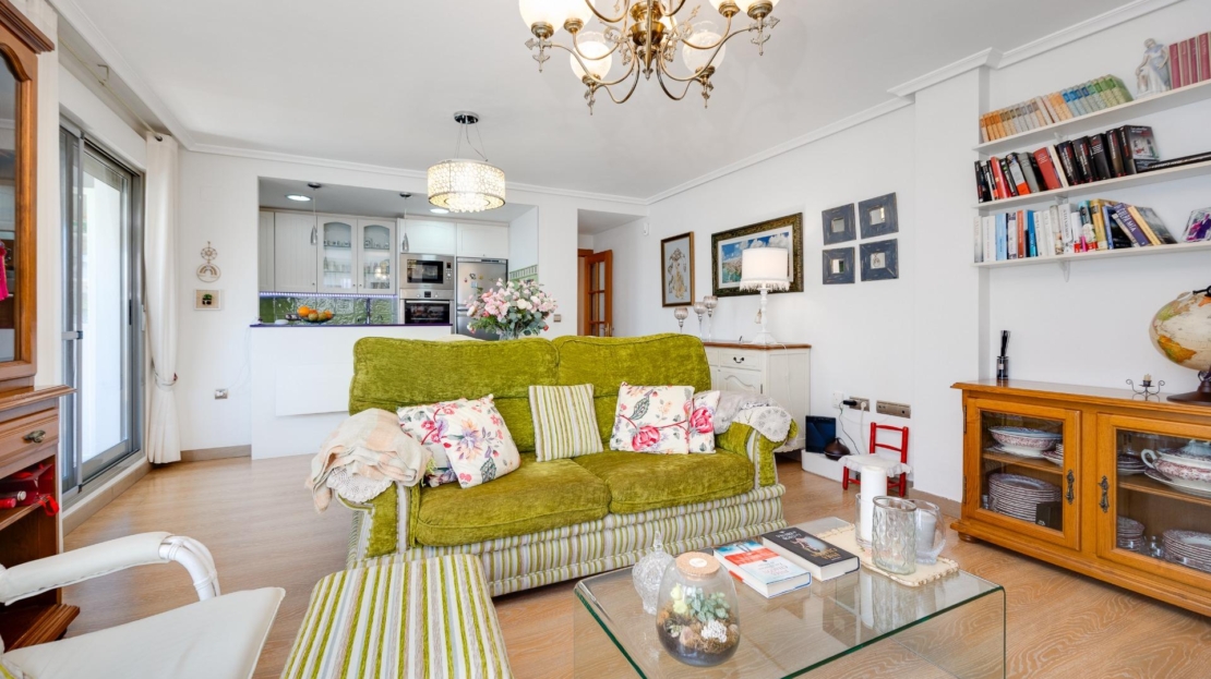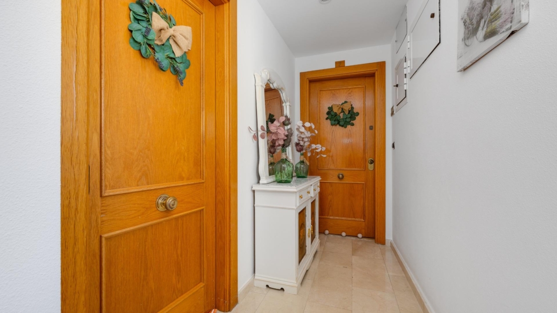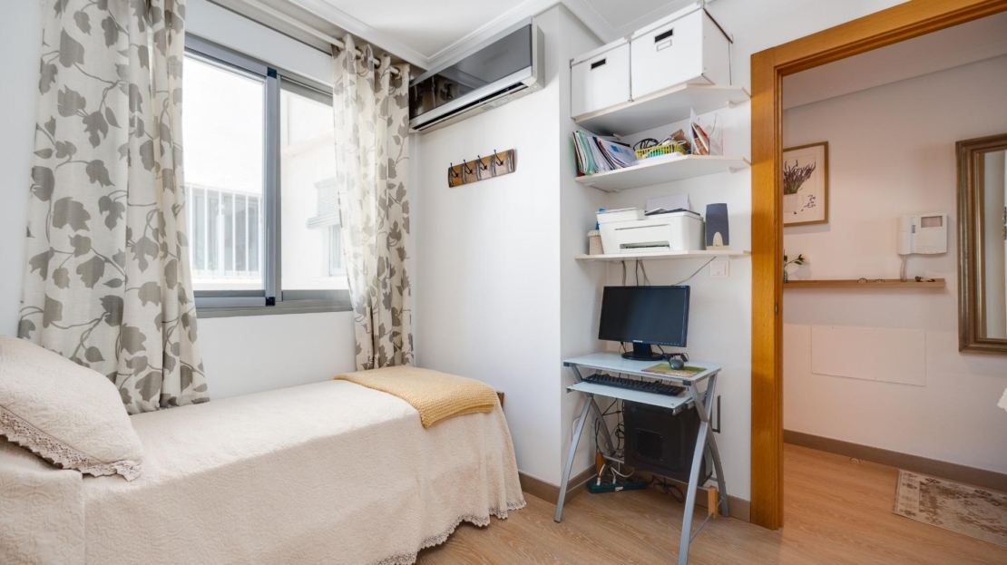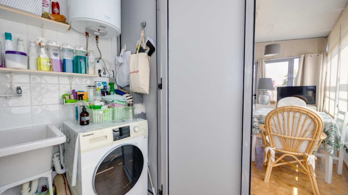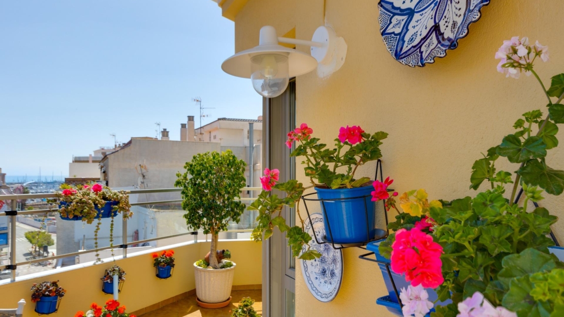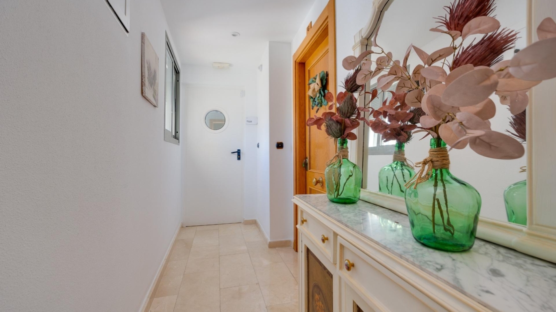 Denna vackra takvåning på femte våningen med hiss erbjuder ett strategiskt läge i centrala Torrevieja, bara några meter från restaurangen Las Cañas och omgiven av alla nödvändiga tjänster såsom restauranger, apotek, busshållplatser, stormarknader etc. Bostaden utmärker sig genom sin funktionalitet och sitt utmärkta utnyttjande av naturligt ljus tack vare sin dubbla orientering mot söder och öster. Interiören består av ett vardagsrum med matplats integrerat med ett öppet kök, två ljusa sovrum och ett fullt utrustat badrum med dusch. Vardagsrummet har direkt tillgång till en rymlig L-formad terrass som omger bostaden; detta utrymme är uppdelat i en inglasad del och en öppen del, vilket möjliggör användning året runt både praktiskt och för rekreation samtidigt som man kan njuta av fri utsikt och havsutsikt. Dessutom ingår ett privat solarium på övervåningen med fantastisk utsikt och en köksdel, vilket ger ett extra utomhusutrymme av stort värde för sammankomster med vänner eller familj. Missa inte takvåningen du alltid har drömt om. Kontakta oss nu och kom och upptäck din nästa terrass med havsutsikt!