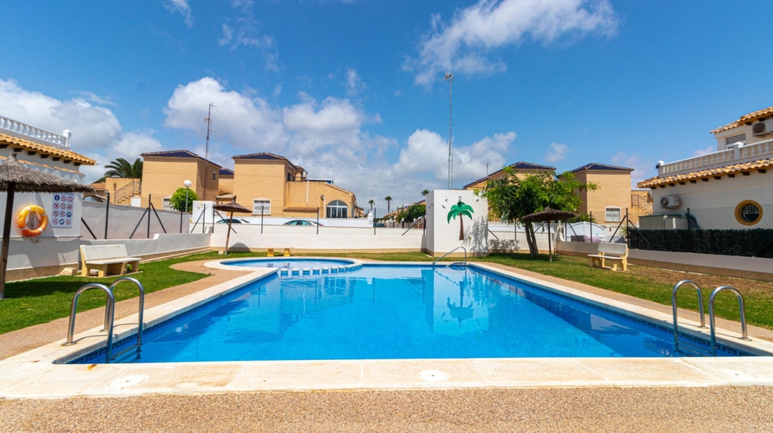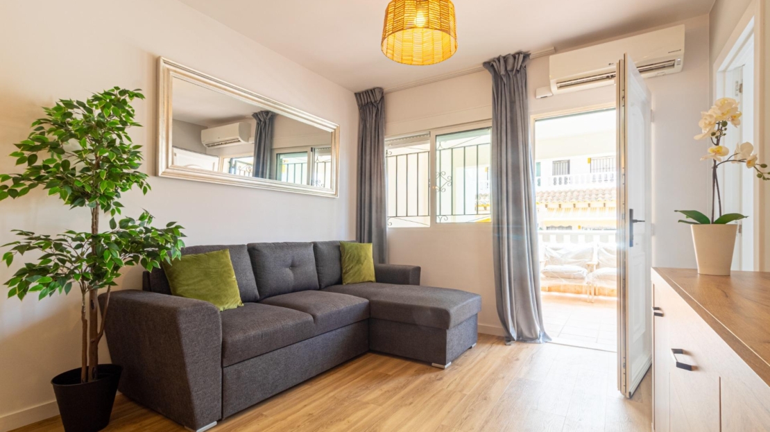 ¡Bienvenido a tu nuevo hogar en el soleado residencial Los Naranjos II! Este adosado recién reformado y completamente amueblado en Los Altos te ofrece la combinación perfecta de comodidad, estilo y ubicación privilegiada. Imagina disfrutar de mañanas relajadas en tu jardín privado o en el acogedor porche, antes de entrar en un amplio salón comedor ideal para el entretenimiento. La moderna cocina americana, con acceso a una práctica galería, es perfecta para preparar tus comidas favoritas. ~En la planta baja, encontrarás un dormitorio y un baño completo, ideal para invitados o para uso como despacho. Subiendo las escaleras, te esperan otros dos dormitorios espaciosos y otro baño completo, ofreciendo privacidad y confort. Un práctico trastero te ayudará a mantener todo organizado. ~El residencial Los Naranjos II te ofrece una fantástica piscina comunitaria para refrescarte en los días calurosos y un aparcamiento dentro del recinto, garantizando tranquilidad y comodidad. Además, la ubicación es inmejorable, al lado de todos los servicios esenciales: supermercados, tiendas, restaurantes… ¡y a poca distancia de la playa! Con aire acondicionado para tu confort durante todo el año, esta propiedad es una excelente oportunidad para disfrutar de la vida mediterránea. No pierdas la oportunidad de vivir en este oasis de tranquilidad y comodidad. ¡Contáctanos hoy mismo para una visita!