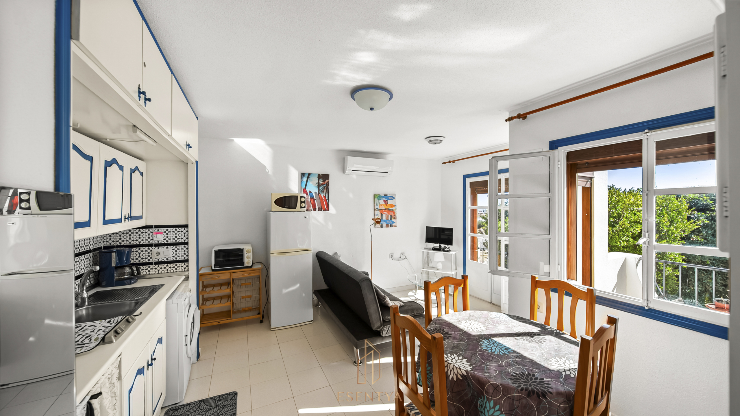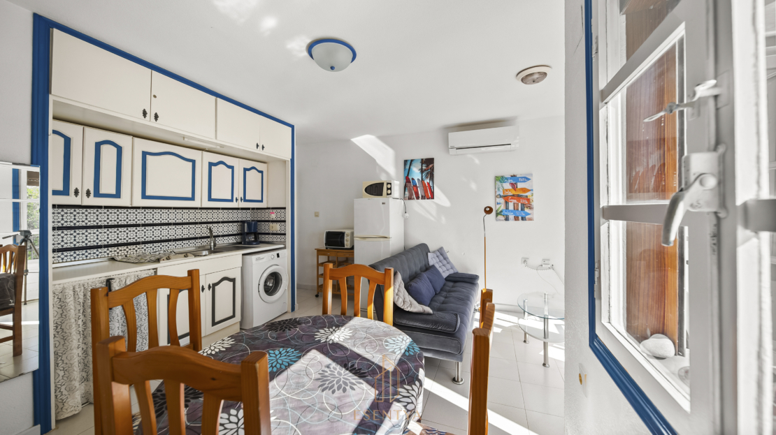 Ljus bostad med sydostlig orientering och terrass med utsikt över trädgårdar och gemensam pool. Den har 1 sovrum och 1 badrum, båda med fönster och utsikt mot naturen. Vardagsrum med luftkonditionering och en praktisk planlösning på 42,90 m² byggd yta. Säljs möblerad och inflyttningsklar. Belägen i ett lugnt område nära El Limonar International School Villamartín och Greenlands Blue Lagoon, 6 km från stranden och omgiven av golfbanor, butiker och service.
