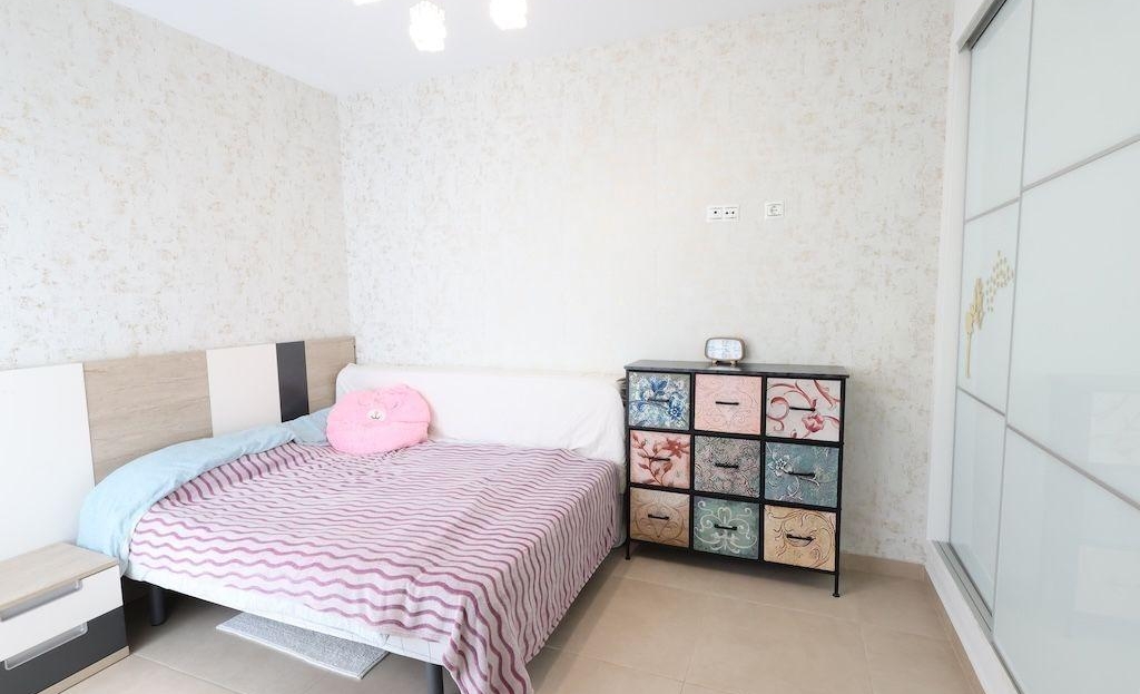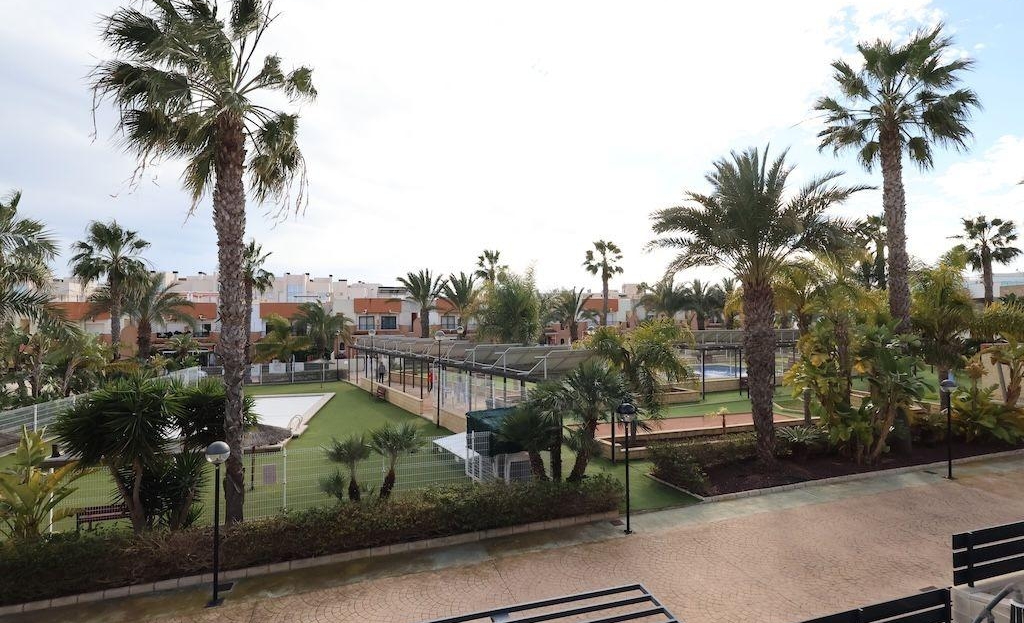 Playa Flamenca, Residencial El manantial adosado con orientación sur de dos plantas más sótano destinado a garaje de 101 m2 y 97 m2 de garaje, la vivienda cuenta con 3 dormitorios (1 de ellos en planta baja) y 3 baños, salón comedor, cocina abierta al salóncon patio trasero, amplio jardin delantero frente a la zona comunitaria y un amplio solarium con vistas a las zonas comunes y a las 2 piscinas comunitarias y zona de juegos para niños.