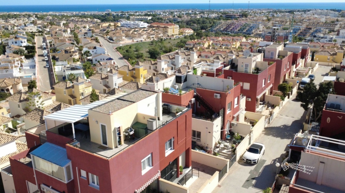 Le presentamos este encantador adosado de 3 dormitorios y 2 baños situado en la codiciada zona de Villamartín, en la hermosa Costa Blanca.Esta vivienda ofrece la combinación perfecta de confort, espacios exteriores y preciosas vistas — ideal como residencia habitual, casa de vacaciones o inversión.En la planta baja encontramos un luminoso salón-comedor, cocina totalmente equipada, un baño completo y acceso directo a una amplia terraza privada, perfecta para comer al aire libre, relajarse o disfrutar del clima mediterráneo durante todo el año.En la planta superior se encuentran los tres dormitorios y un segundo baño. Desde aquí se accede a un balcón privado, mientras que el gran atractivo de la vivienda es su impresionante solárium con espectaculares vistas al mar, ideal para tomar el sol o disfrutar con familiares y amigos.La propiedad está parcialmente reformada, aportando un estilo más moderno y fresco, y se vende totalmente amueblada, lista para entrar a vivir o alquilar de inmediato.Los residentes disfrutan además de una bonita piscina comunitaria, perfecta para refrescarse durante los meses más cálidos.Ubicada cerca de campos de golf, restaurantes, comercios y a pocos minutos en coche de las playas de Orihuela Costa, esta vivienda representa una excelente oportunidad en una de las zonas más demandadas de la Costa Blanca.