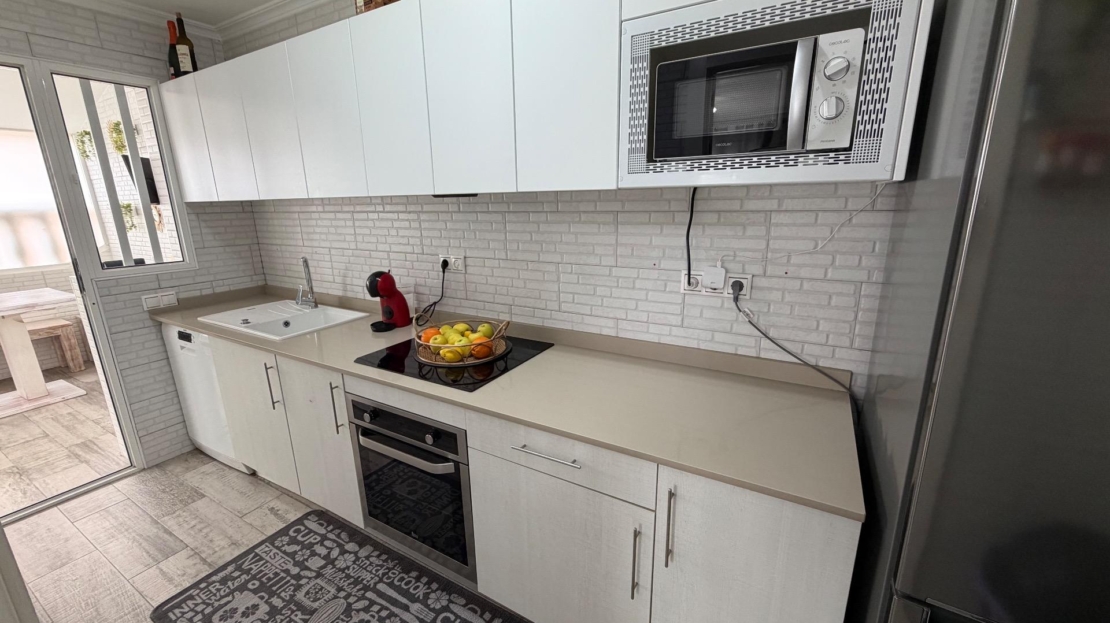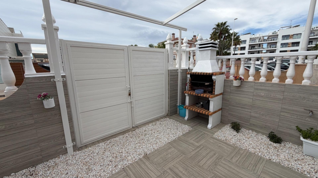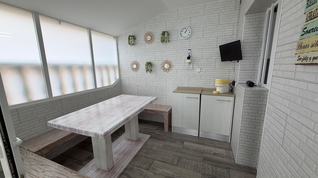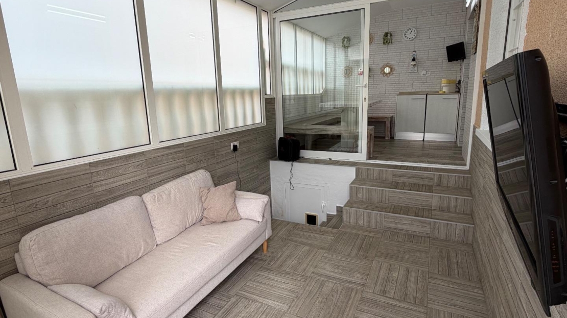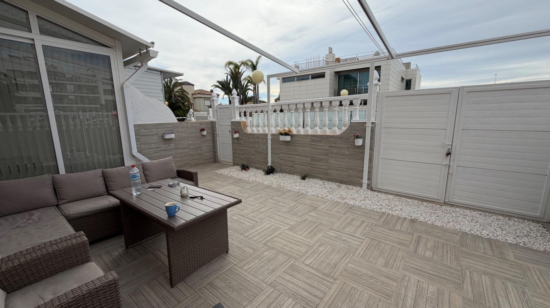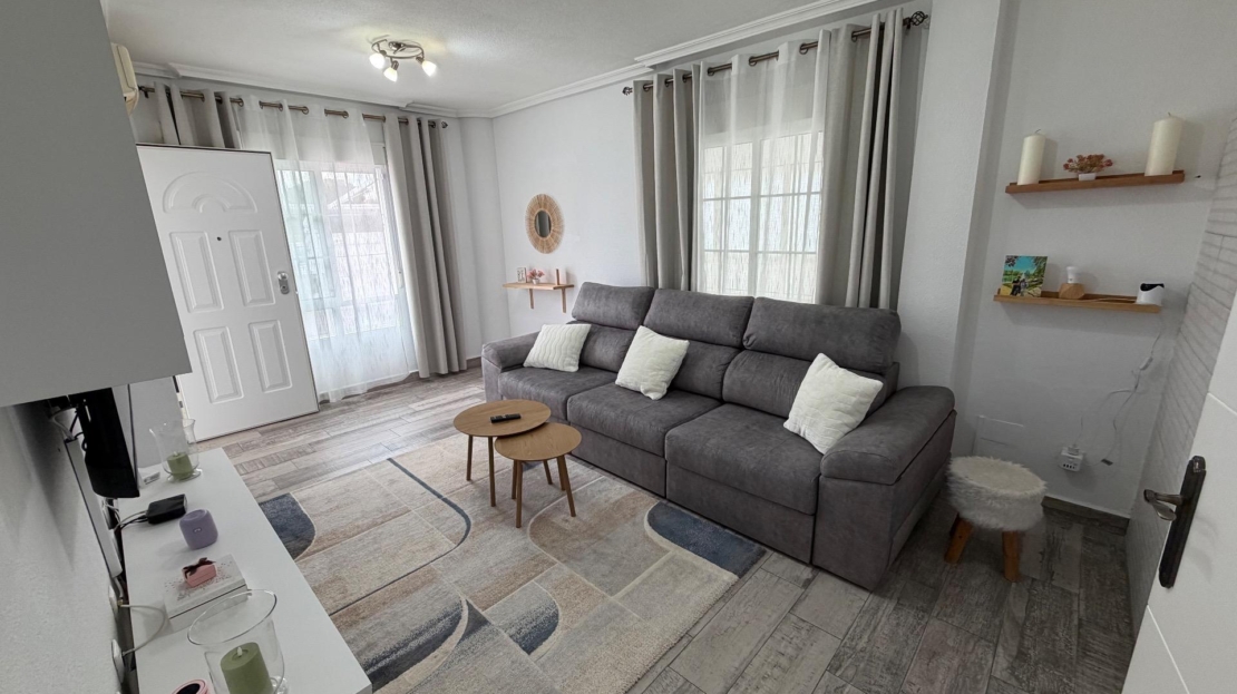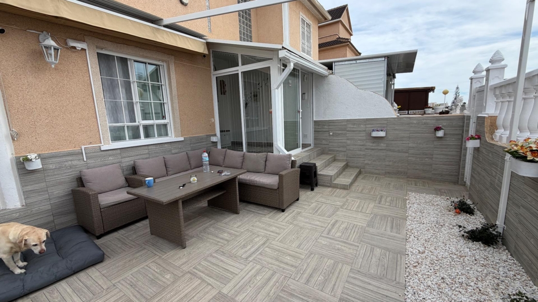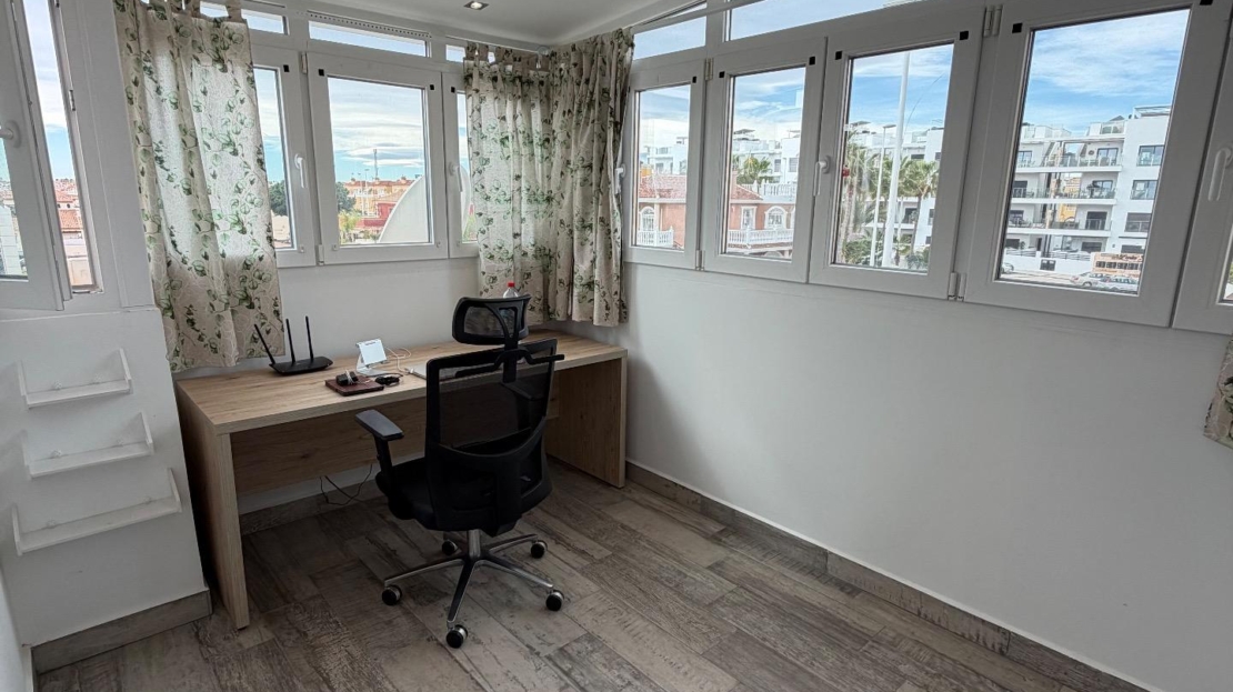 Discover this spectacular semi-detached triplex in the sought-after area of La Zenia, Orihuela Costa. With a constructed area of 120 m² and renovated in a modern style, this property offers three spacious double bedrooms distributed across three floors, ideal for families or groups seeking comfort. On the first floor, you’ll find a large terrace perfect for enjoying the Mediterranean sun, as well as another glazed terrace that brings natural light into the dining room and connects it to the outdoors. Here you’ll also find a fully equipped independent kitchen, perfect for creating delicious family meals. The spacious living room is ideal for relaxing after a long day by the sea. On the second floor, there are two cozy bedrooms and a full bathroom; meanwhile, the third floor features an additional bedroom next to a private office, perfect for working from home or studying, plus another conveniently located full bathroom. Its strategic location allows for easy access by public transport and is surrounded by shopping centers, satisfying all your daily needs without any additional hassle! Don’t miss this unique investment opportunity so close to the ocean (just a few minutes’ drive) and make it your dream home today. Shall we schedule a visit?