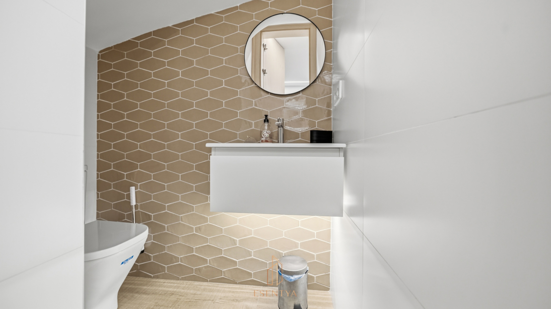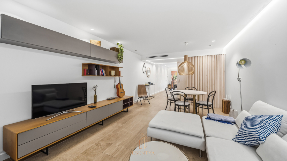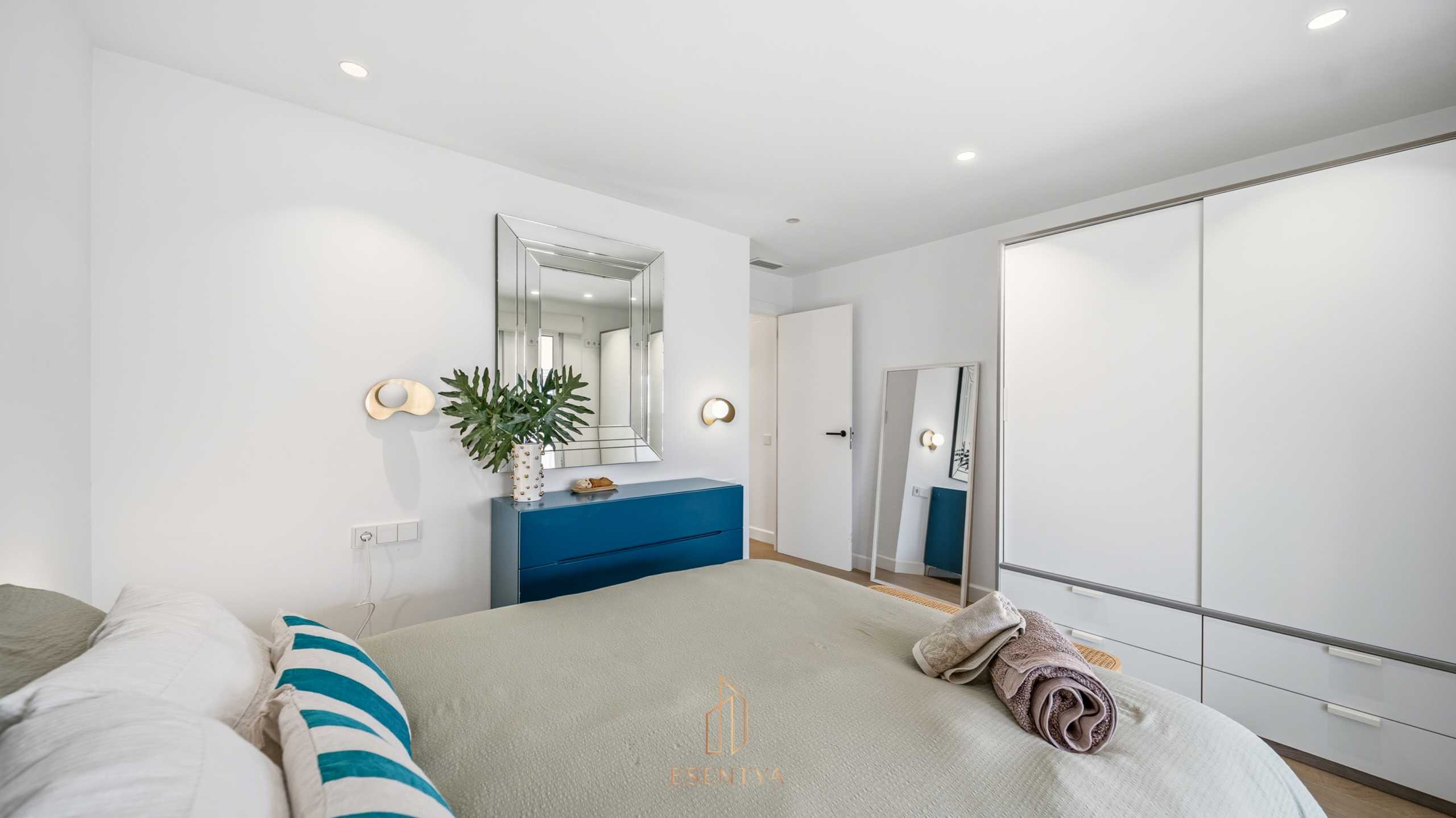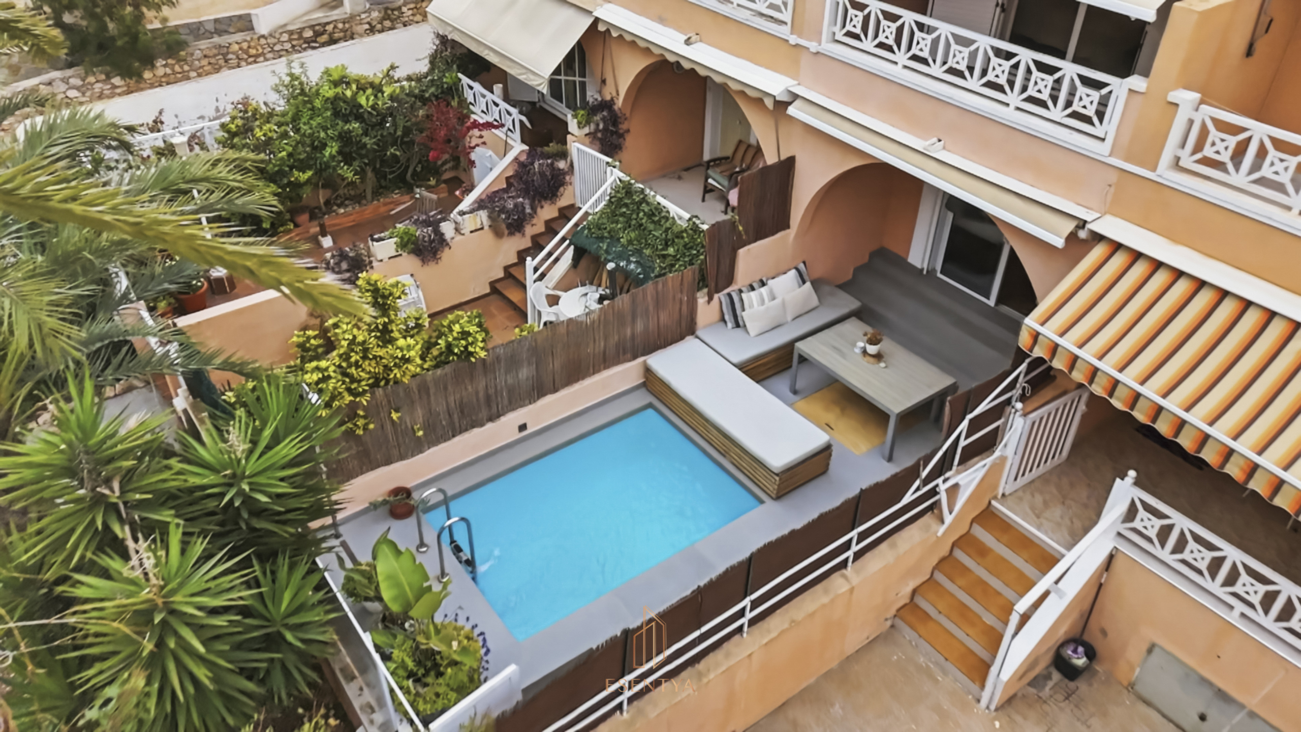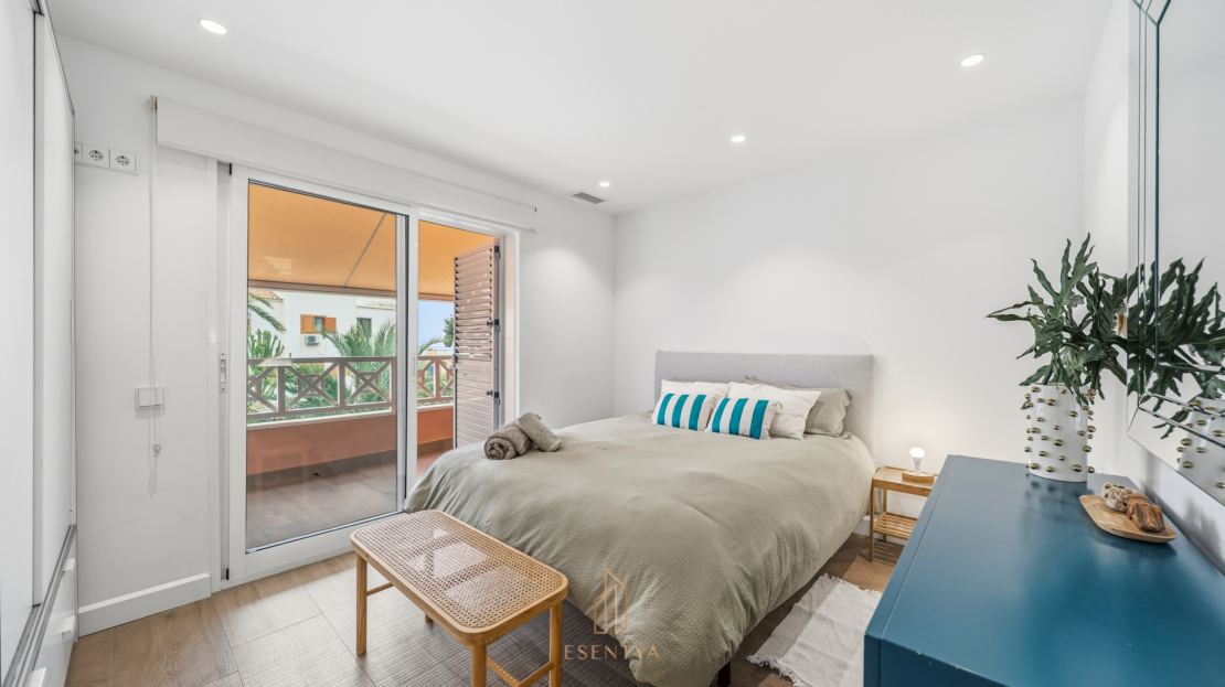 Radhus beläget endast 150 meter från havet, i ett område med restauranger inom gångavstånd. Bostaden har 132 m² byggd yta och består av två rymliga sovrum med inbyggda garderober, 1 komplett badrum och 1 gästtoalett. Den har fullt utrustat kök och utgång till terrass och balkong. Fastigheten har direkt ingång från gatan samt från insidan av bostadsområdet. Renoverad för cirka 6 år sedan och med giltig turistuthyrningslicens.