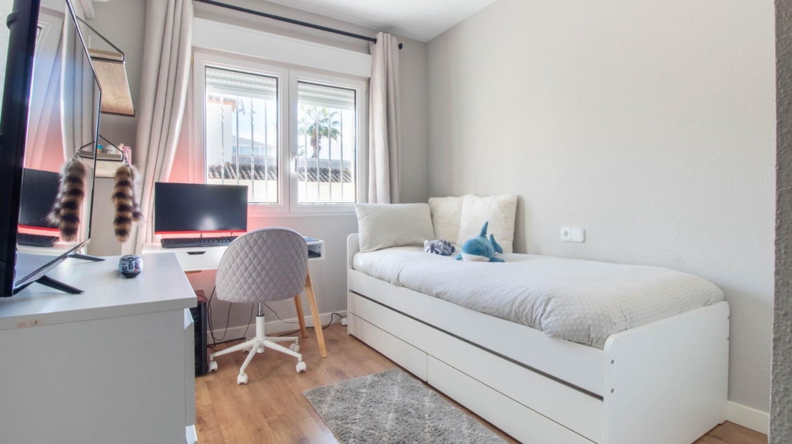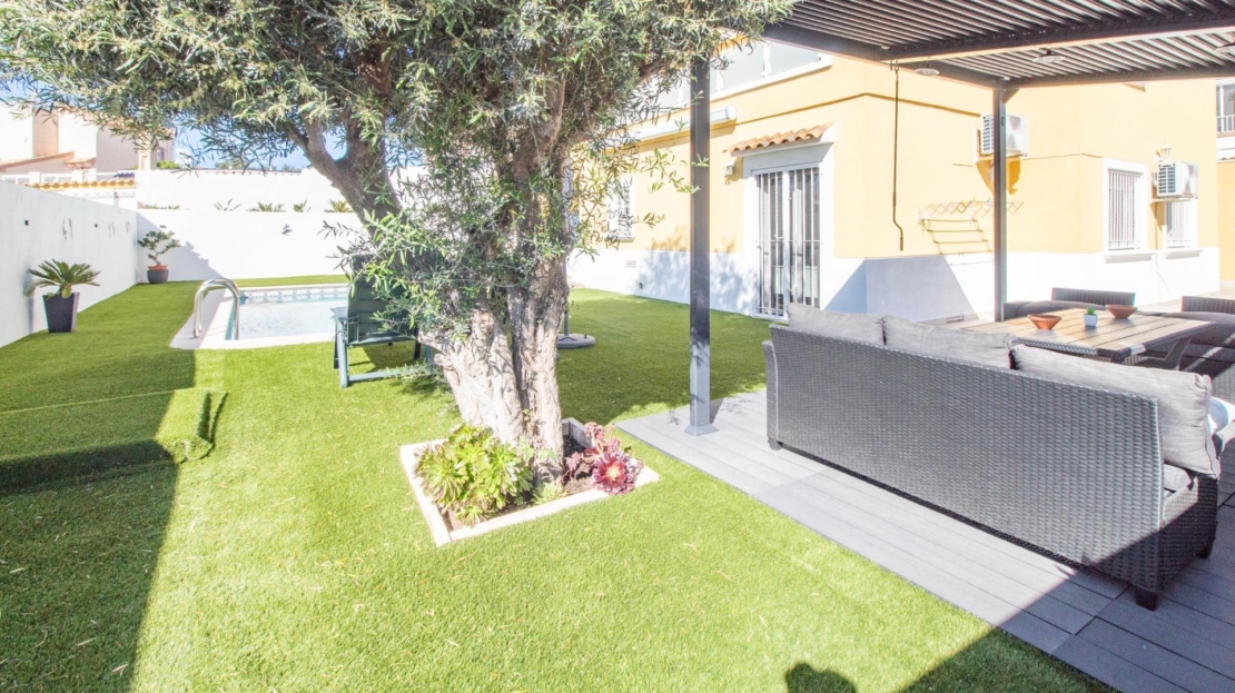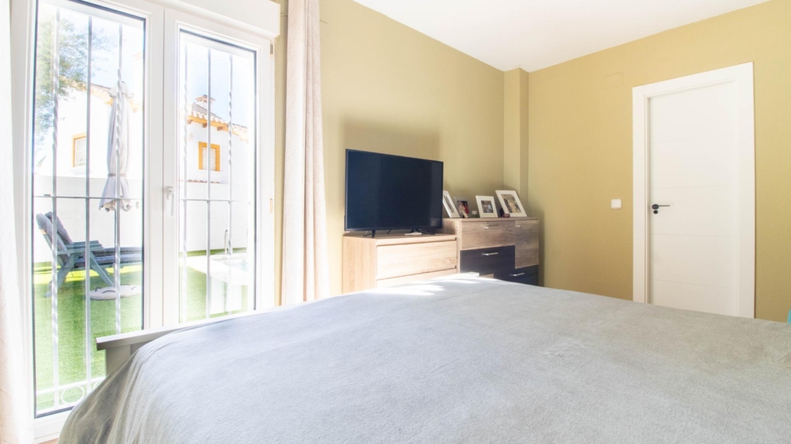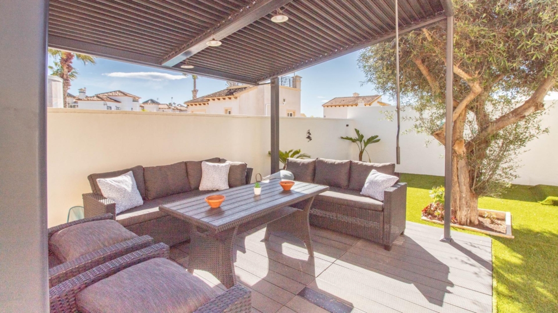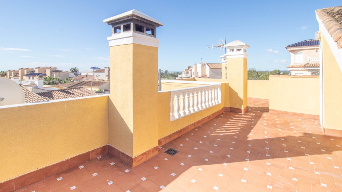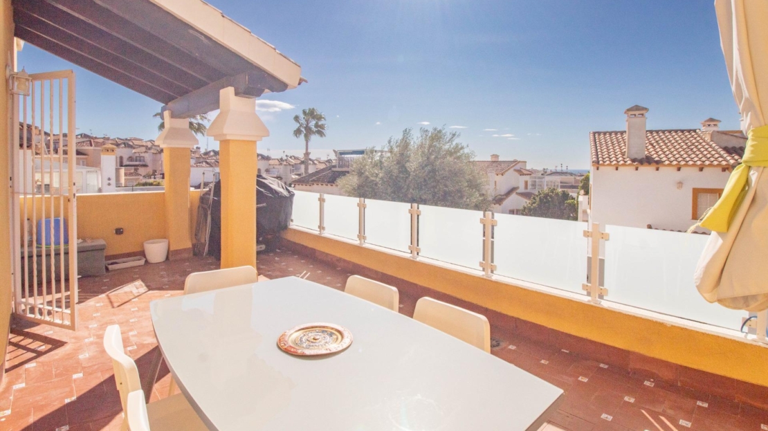 Os presentamos esta fantástica villa independiente con piscina privada en El Galán, San Miguel de Salinas.~La villa se distribuye en 2 plantas y solárium. Cuenta con 3 amplios dormitorios en la misma planta, 2 baños completos, uno en suite, y aseo, cocina independiente totalmente equipada. Zona de comedor y salón con chimenea, desde el salón se sale a una bonita terraza orientada al sur desde donde se ve el mar.~Tiene mucho espacio al aire libre, 2 terrazas, solárium y parcela de 309 metros cuadrados. ~~La villa dispone de zona de aparcamiento, trastero y placas solares. La zona exterior es totalmente independiente, con zona chill out con un olivo y la piscina privada. También tiene una zona de arboles frutales típicos mediterráneos como naranjo y limonero.