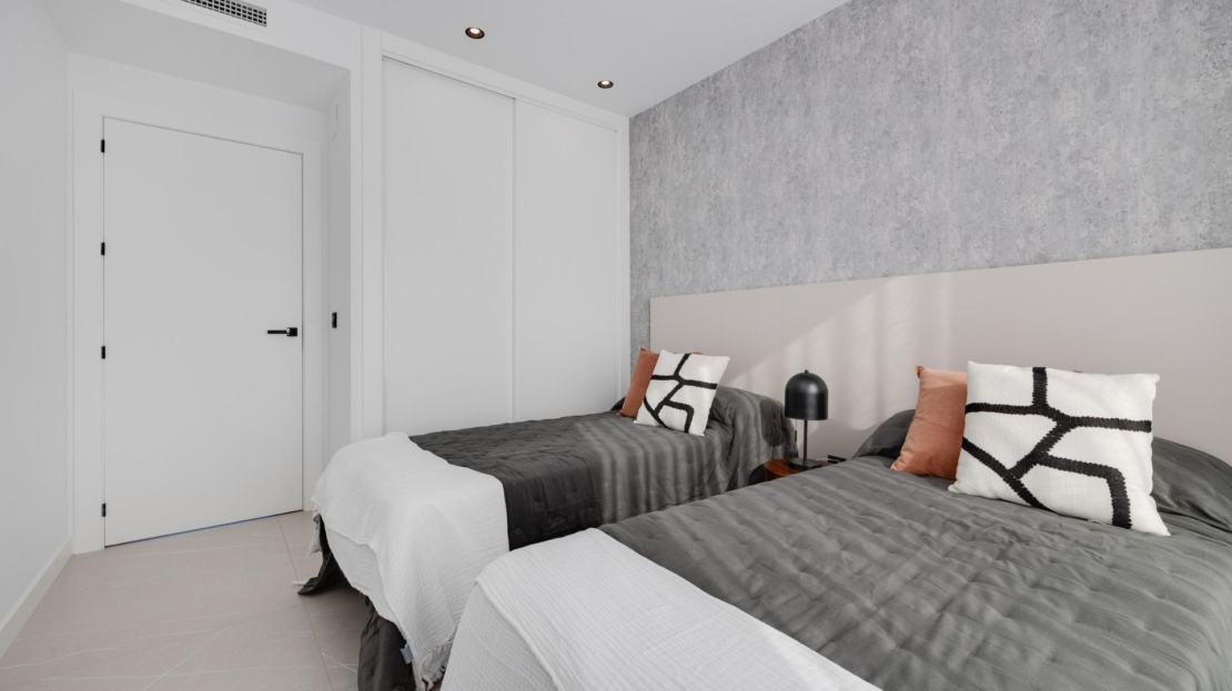 Dessa enplansvillor är genomtänkt utformade för maximal komfort och enkelhet att leva. Med en öppen planlösning ger de gott om utrymme för avkoppling och underhållning. Villorna har högkvalitativa ytbehandlingar, inklusive termiska aluminiumfönster, Climalit tvåglasfönster och förinstallation för kanaliserad luftkonditionering. För extra bekvämlighet har bostäderna elektriska fönsterluckor, moderna badrum med duschkar i harts och inbyggda svarta kranar samt privat parkering i det underjordiska garaget med extra förvaringsutrymme.