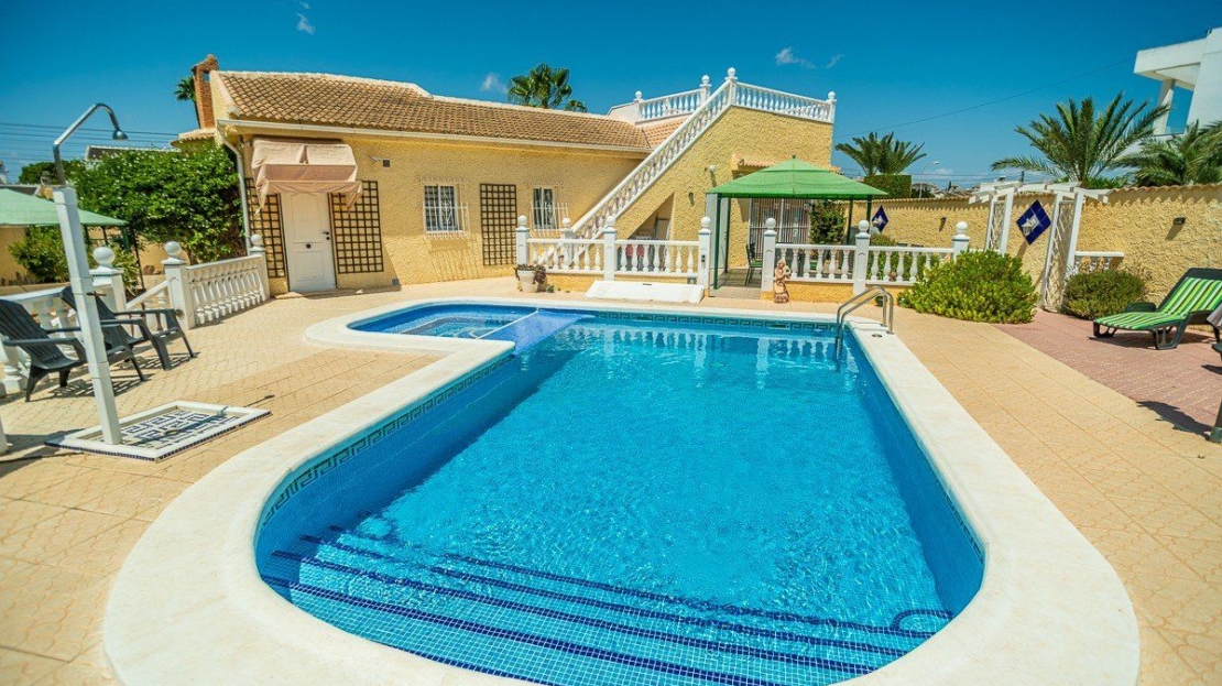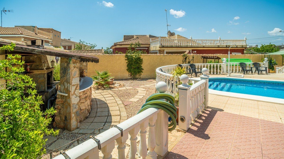 En venta: Impresionante villa de estilo mediterráneo con vistas a la azotea y piscina en La Siesta, TorreviejaDescubra la casa de sus sueños en la tranquila zona residencial de La Siesta , cerca de las espectaculares salinas del Parque Natural de Torrevieja , famoso por su singular Laguna Rosa de tonos rosados. Esta espaciosa y luminosa villa de estilo mediterráneo ofrece impresionantes vistas a la laguna y al horizonte de Torrevieja desde su terraza en la azotea, perfecta para relajarse y disfrutar.Esta excepcional propiedad cuenta con aproximadamente 156 m² de espacio habitable en una generosa parcela de 800 m² . La villa cuenta con una zona de piscina de hermoso diseño con jacuzzi incorporado y un elegante bar , además de amplias terrazas para disfrutar del sol mediterráneo.Características destacadas de la propiedad:Casa principal con 3 amplios dormitorios y 3 baños modernos. Gran terraza en la azotea con vistas panorámicas a la Laguna Rosa y Torrevieja. Hermoso jardín y espacios de estar al aire libre que abarcan 800 m² Lujosa zona de piscina con jacuzzi integrado y bar en la piscina para una relajación máxima. WiFi de alta velocidad y Smart TV con YouTube y Netflix incluidos 4 unidades de aire acondicionado para comodidad durante todo el añoUbicación privilegiada y atracciones locales:Camine hasta el parque La Siesta , que cuenta con áreas de juegos infantiles, canchas de pádel, circuitos de agilidad y la pista de bombeo pavimentada más grande de España. Cerca del Aquapark Flamingo hay toboganes de agua coloridos y piscinas al aire libre. Cerca de supermercados, bancos, farmacias, restaurantes y vibrantes bares locales con música en vivo y karaoke. A minutos del centro comercial Habaneras y de algunas de las playas más bonitas de la Costa Blanca, incluidas La Mata y la playa del Moncayo. Cómodo acceso al aeropuerto de Alicante (~35 minutos) y al aeropuerto de Murcia (~50 minutos) en coche.Esta villa mediterránea es perfecta como residencia permanente, casa de vacaciones o inversión en una de las zonas más codiciadas de Torrevieja. Combinando lujo, privacidad y una ubicación privilegiada cerca de la belleza natural y de vibrantes servicios, es una propuesta verdaderamente única.¡Contáctenos hoy para concertar una visita y hacer de esta espectacular villa su nuevo hogar bajo el sol!