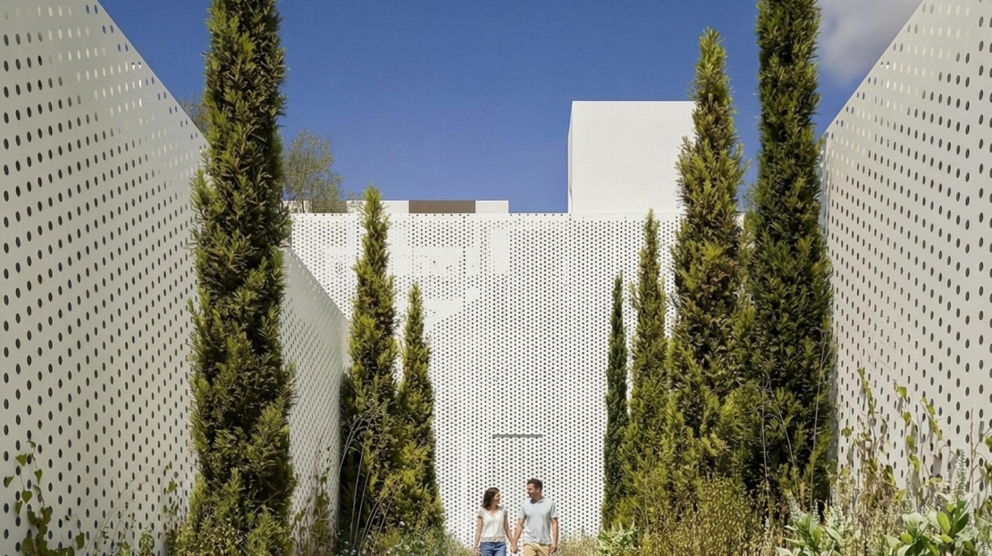 Boende kan njuta av en vackert designad gemensam pool med solarium, omgiven av anlagda trädgårdar som skapar en lugn och inbjudande atmosfär. Husen har ett fullt utrustat kök i matt vit finish med svart bänkskiva, luftkonditionering med split-enheter, aerotermiskt system för varmvatten, förstärkt säkerhetsdörr och badrum med inbyggda möbler och duschväggar. En hiss förbinder parkeringsnivån med bostadsområdet för extra bekvämlighet.
