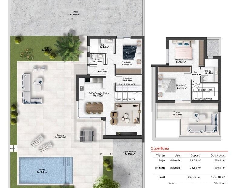 Upptäck ett exklusivt nybyggnadsprojekt med moderna villor beläget i Altaona Golf Resort, ett av de mest attraktiva bostadsområdena i Murcia. Omgivet av natursköna landskap och berg erbjuder denna säkra golfanläggning en fridfull miljö, samtidigt som den ligger bara en kort bilresa från staden Murcia och Medelhavskusten.