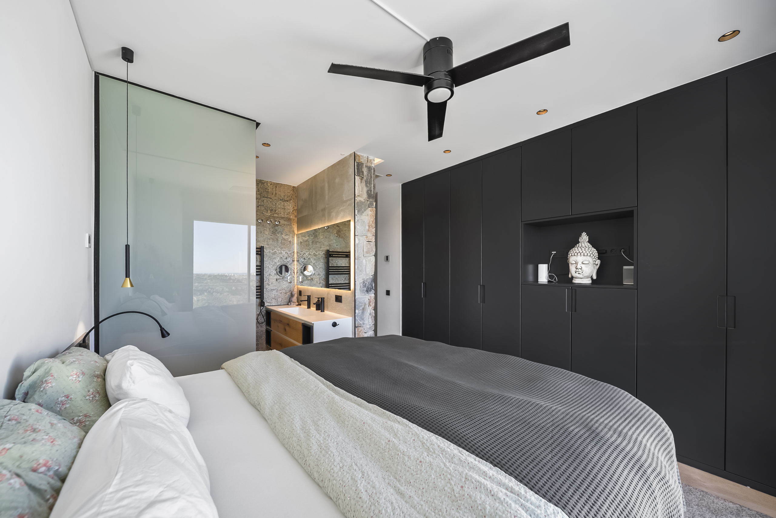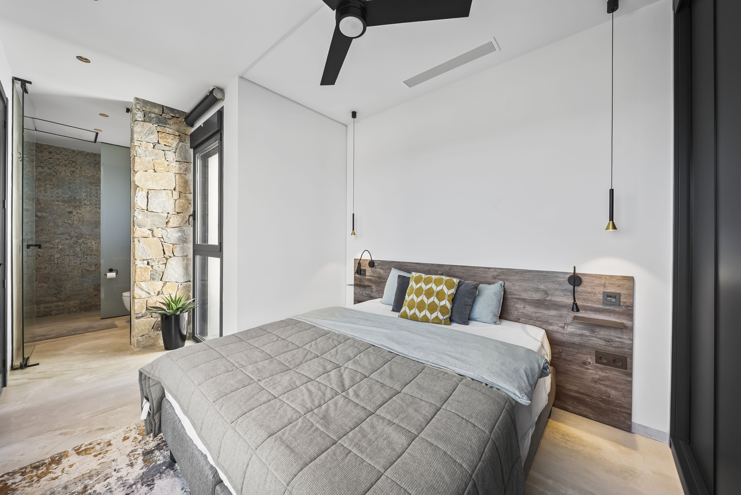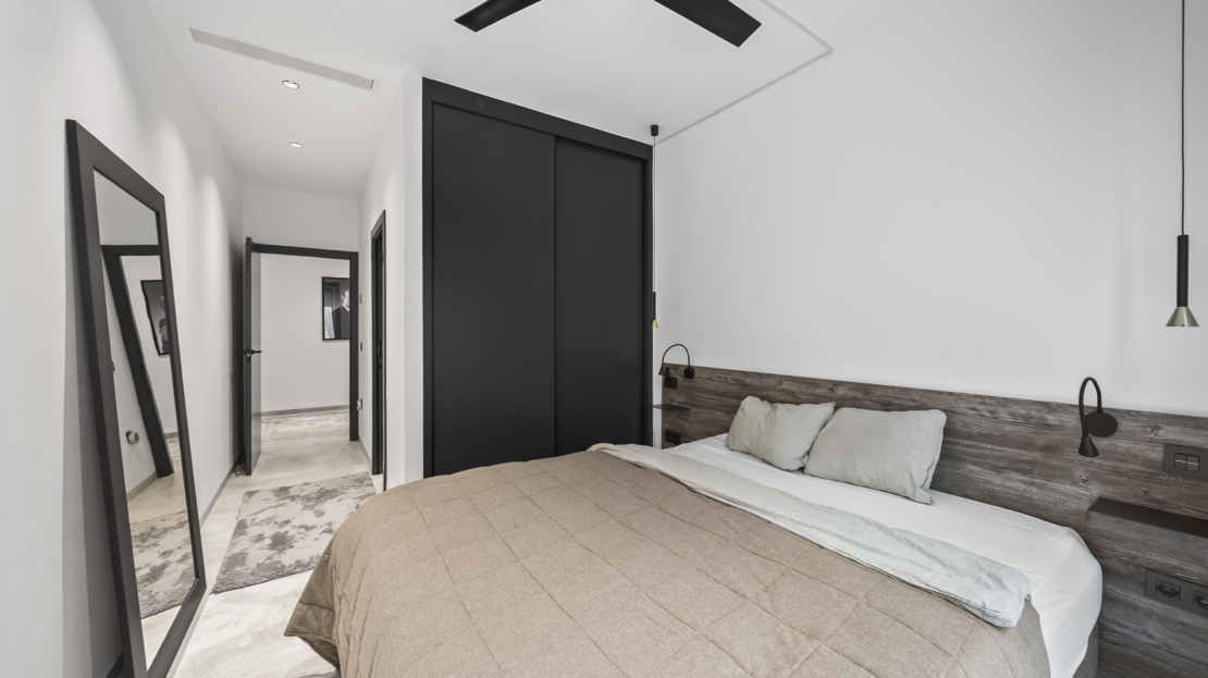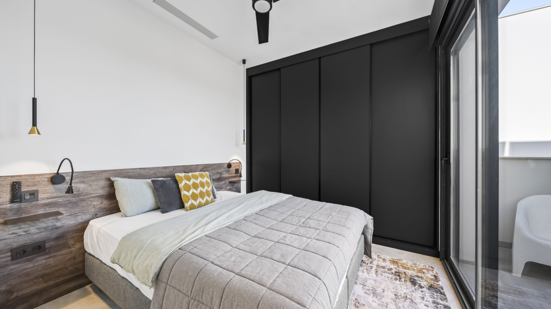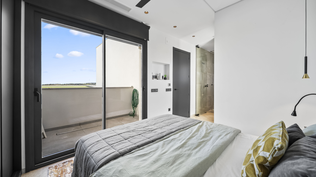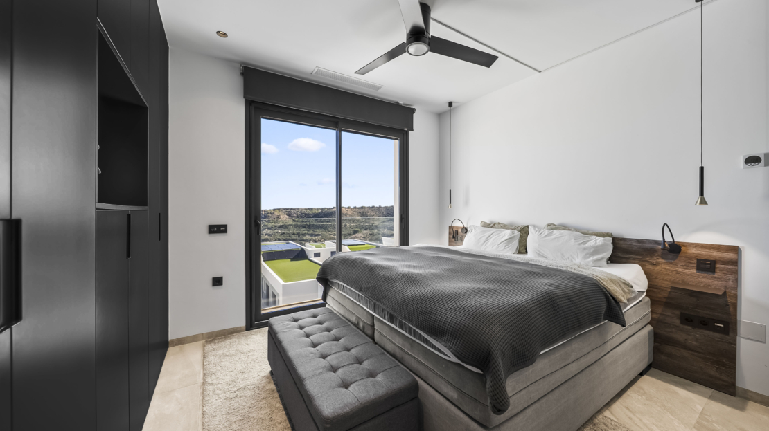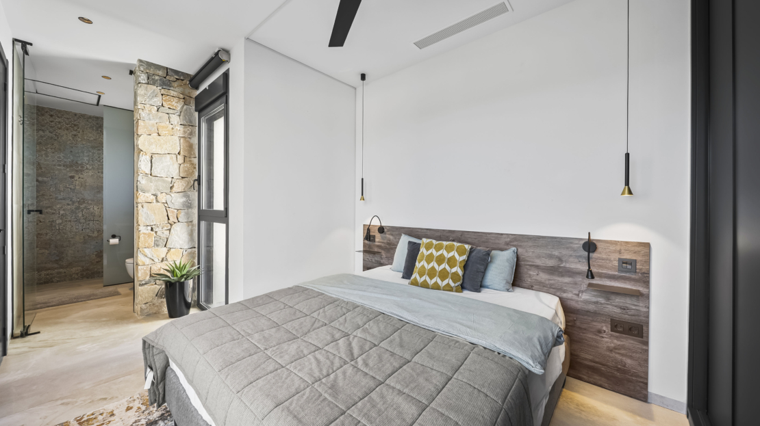 På andra våningen finns ytterligare två sovrum, båda med egna badrum. Ett av sovrummen har dessutom en privat balkong – en perfekt plats för att börja dagen med en kopp kaffe och njuta av utsikten. Master bedroom, som ligger på samma våning, erbjuder en rogivande atmosfär och gott om förvaring.