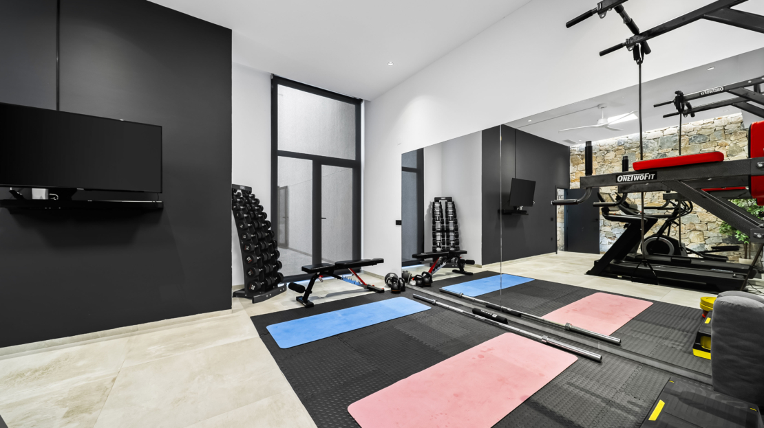 Villans källarplan erbjuder ännu mer utrymme och möjligheter. Här finner du ett extra vardagsrum, idealiskt som lounge eller hemmabio, ett sovrum med eget badrum samt ett gym för den som vill hålla sig aktiv. Från källaren når du även en mysig patio där nuvarande ägare har placerat ett pingisbord – en perfekt plats för både avkoppling och aktivitet. Dessutom finns en praktisk tvättstuga, ett förråd och ett rymligt garage med gott om plats.