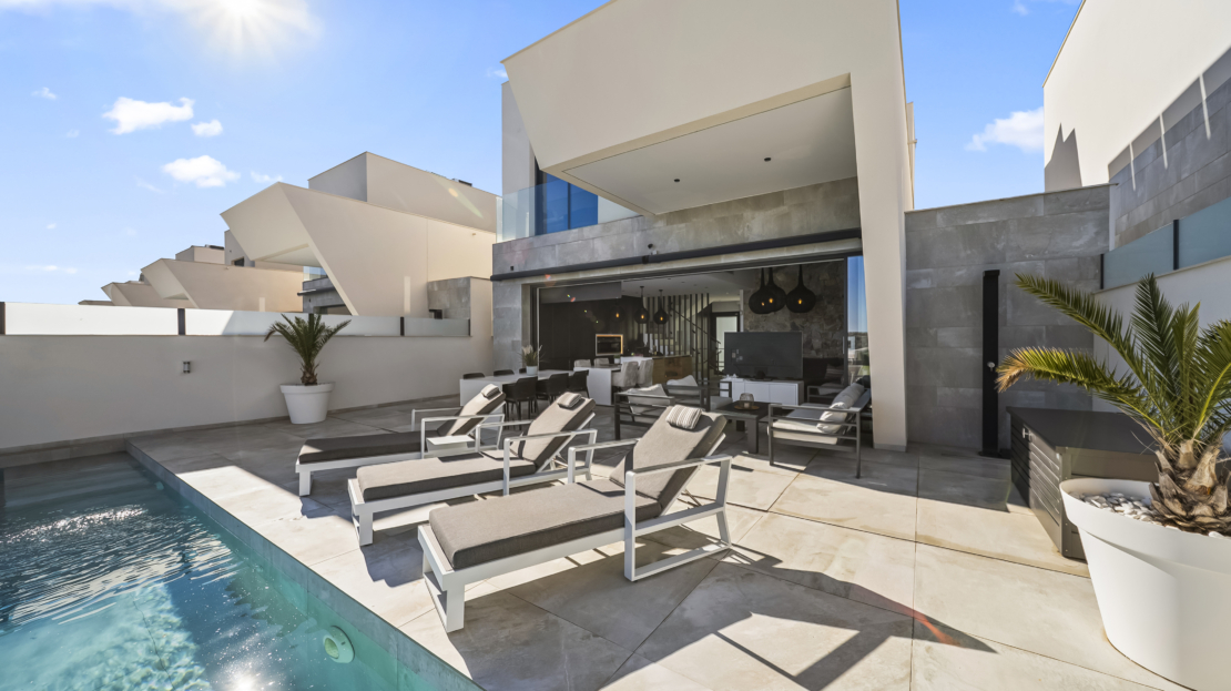 Denna villa är belägen i det populära och lugna området Ciudad Quesada, känt för sin natursköna omgivning, sina golfbanor och sitt stora utbud av restauranger, butiker och caféer. Här bor du med närhet till promenadstråk, cykelvägar och sportaktiviteter. Bara en kort bilfärd bort når du vackra stränder, perfekt för sol och bad.