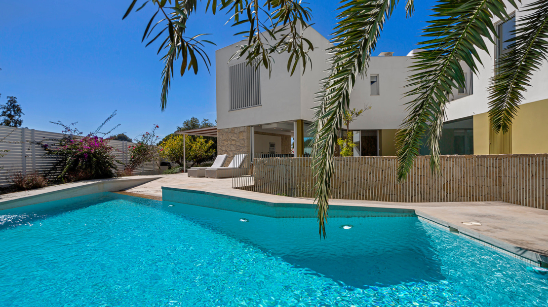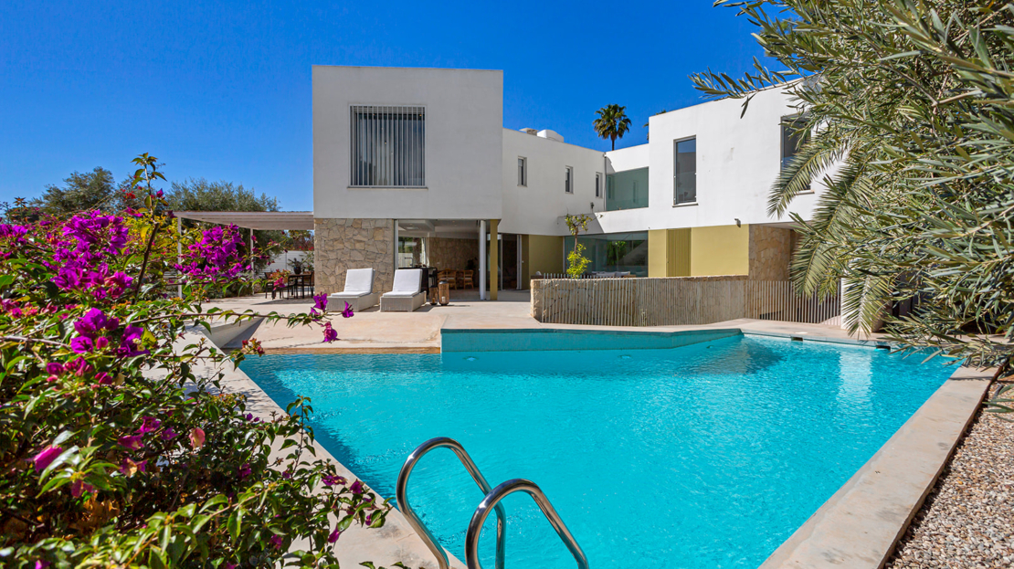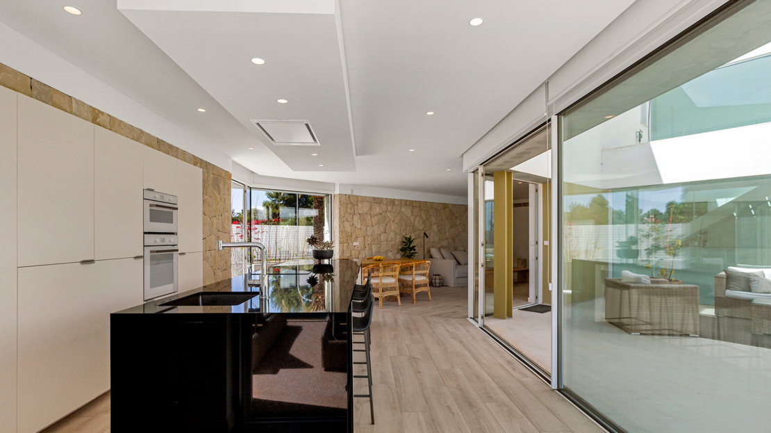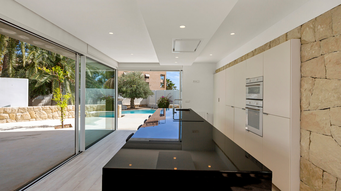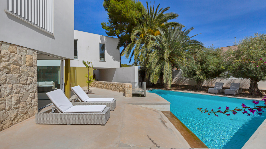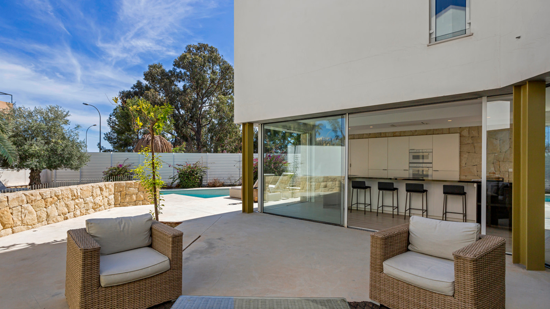 Modern villa med privat pool 200 m från Muchavista-stranden.