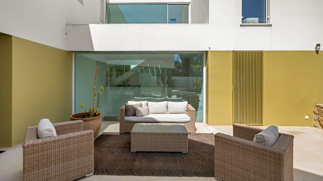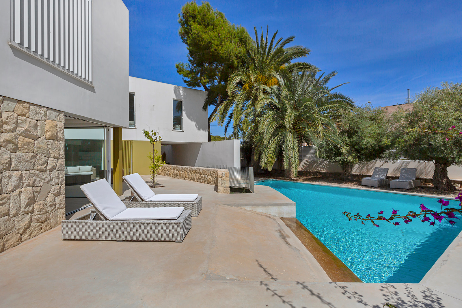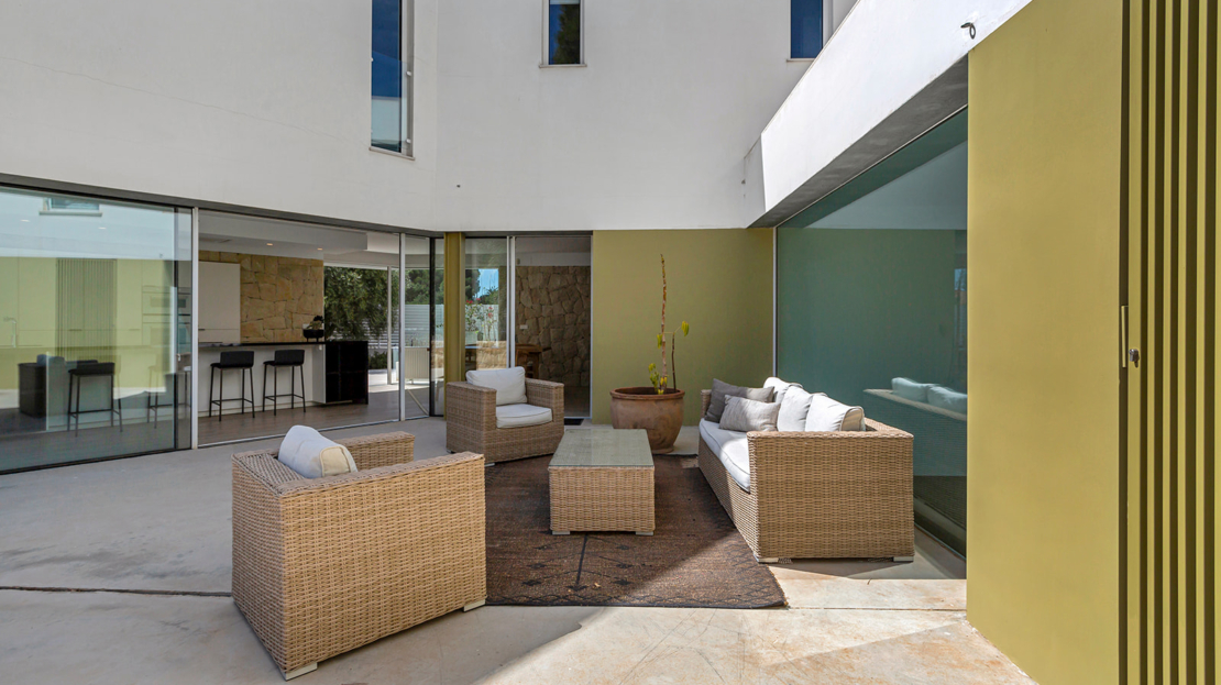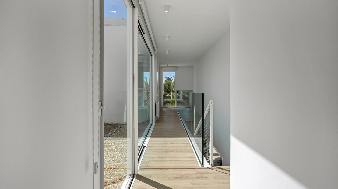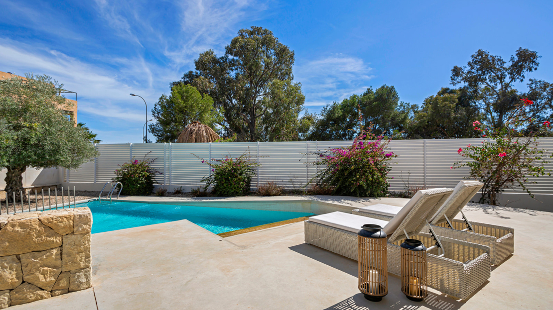 Modern villa med privat pool 200 m från Muchavista-stranden.