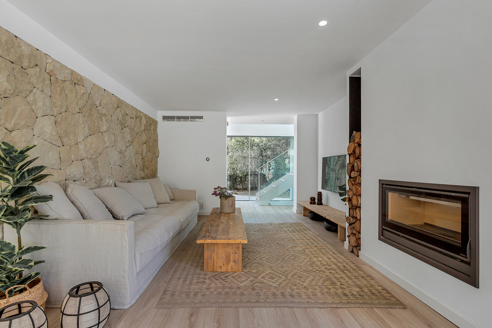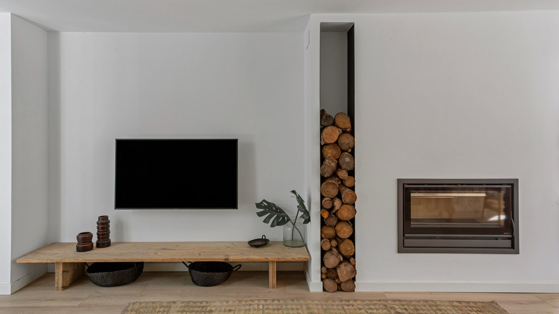 Vardagsrum med öppen spis