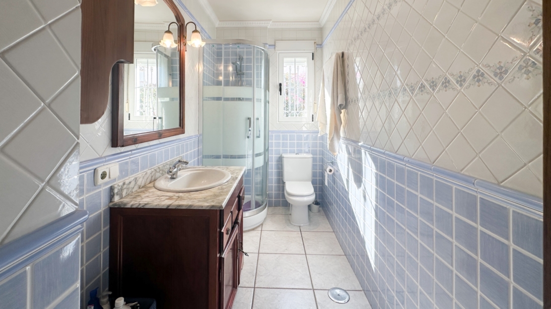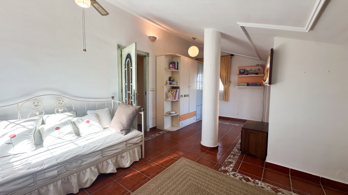 Bostaden är fördelad på rymliga och ljusa utrymmen och har sex sovrum och fem badrum, vilket gör den idealisk både som permanentboende och som semesterbostad för familjer. Den sydliga orienteringen garanterar utmärkt naturligt ljus hela dagen.