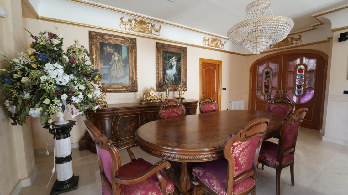 Till salu: lyxvilla i tre plan med en total yta på 734 m², byggd år 2000 på en tomt om 850 m², belägen i en naturlig tallskog i semesterorten Campoamor, Orihuela Costa – Alicante, Spanien. Föreställ dig morgnar med doften av havet, ljudet av tallar och solstrålar genom stora fönster. Huset ligger i ett prestigefyllt område med tallskog på ena sidan och havsutsikt på den andra. Endast 300 meter till Playa de Campoamor. Utrymme för liv, familj och njutning I huset: – 7 rymliga sovrum – 6 badrum – Elegant vardagsrum med 3 m takhöjd – Arbetsrum – Tvättstuga – Garage för 3 bilar – Verkstad och pannrum – 2 öppna och 2 inglasade terrasser Två kök – maximal komfort – Huvudkök med matplats – Separat kök för matlagning Privat tomt med pool – Pool 4×8 m (helt renoverad) – Nya installationer – Belysning och modernt säkerhetssystem – Mysig innergård Komfort året runt – Central luftkonditionering – Radiatorvärme med kopparrör – Dieseluppvärmd panna – Marmorgolv – Larm kopplat till central – Kabelinternet Huset är fullt möblerat och utrustat.