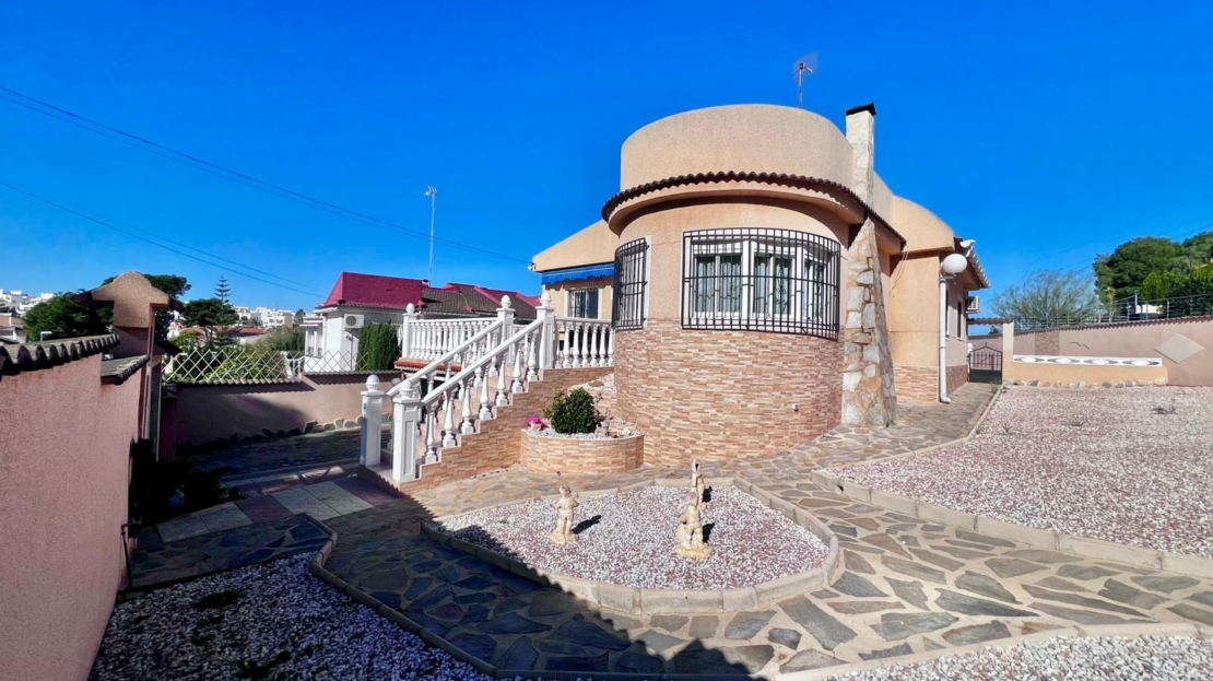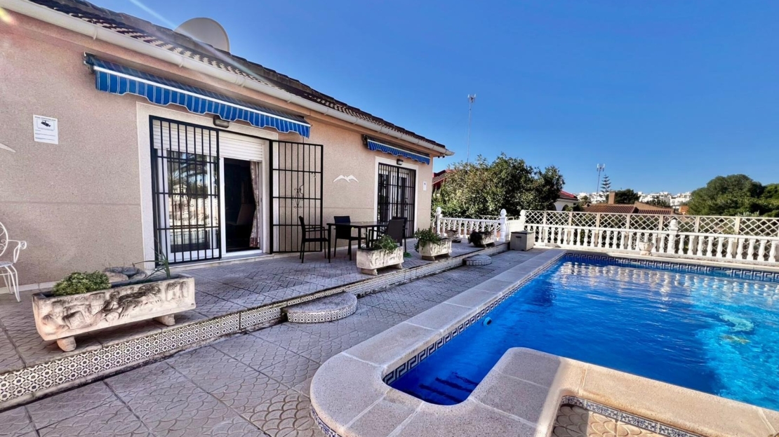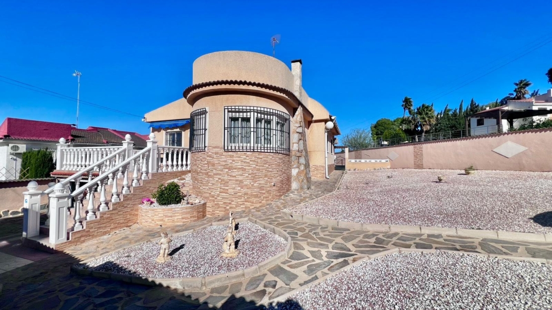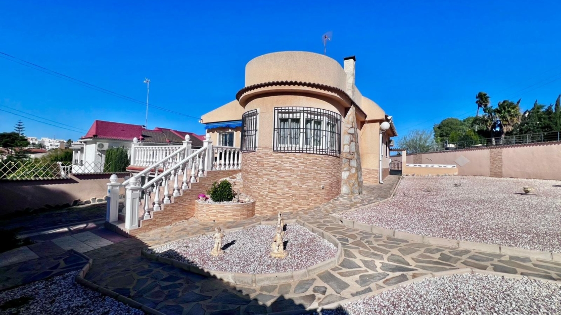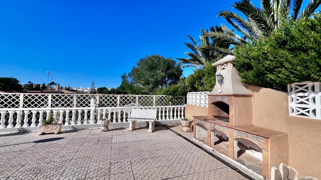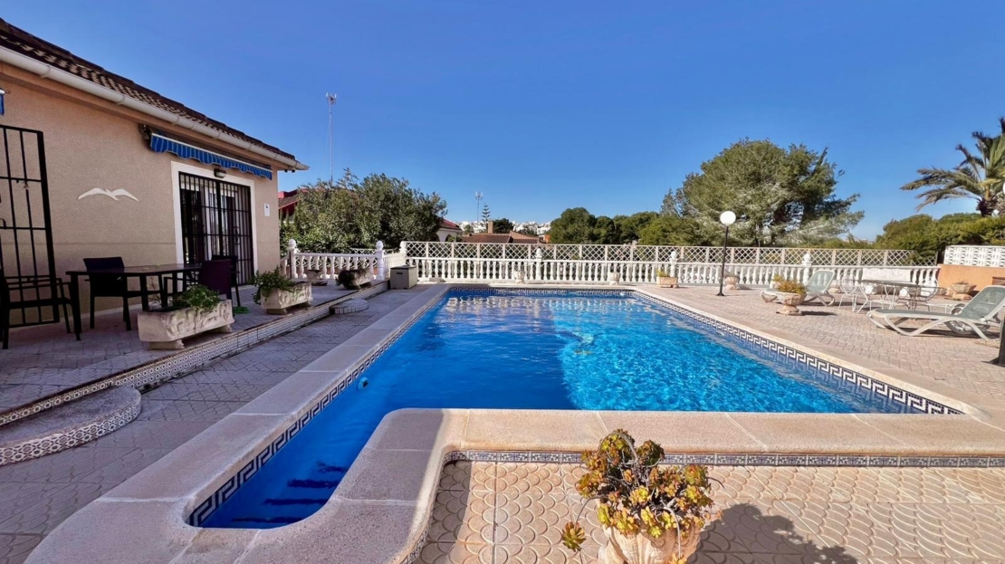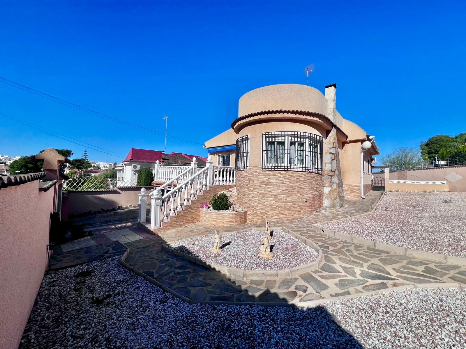 Espectacular villa independiente de 144 m2 construidos sobre una amplia parcela en esquina de 800 m2, perfecta para disfrutar de privacidad, espacio exterior y el mejor clima mediterráneo.~~La vivienda dispone de 2 dormitorios y 2 baños, con la ventaja de que los dormitorios son de gran tamaño, ofreciendo la posibilidad de crear más habitaciones según necesidades. Cuenta con dos amplios salones con chimenea, ideales para el confort en cualquier época del año, además de cocina independiente totalmente funcional.~~En el exterior encontrarás un acogedor porche, piscina privada, zona de barbacoa y amplias áreas para ocio o jardín. También incluye garaje en sótano y aire acondicionado.~~Sobre la zona: Los Balcones es una de las áreas residenciales más demandadas de Torrevieja, tranquila y bien comunicada, cercana a servicios, hospitales, supermercados y a pocos minutos de las playas y del centro comercial Zenia Boulevard.~~Una propiedad con muchísimo potencial, ideal tanto como residencia habitual como inversión.