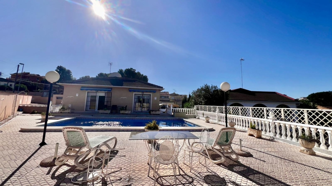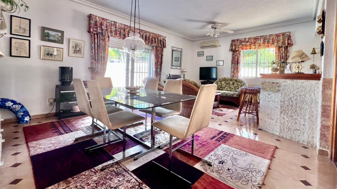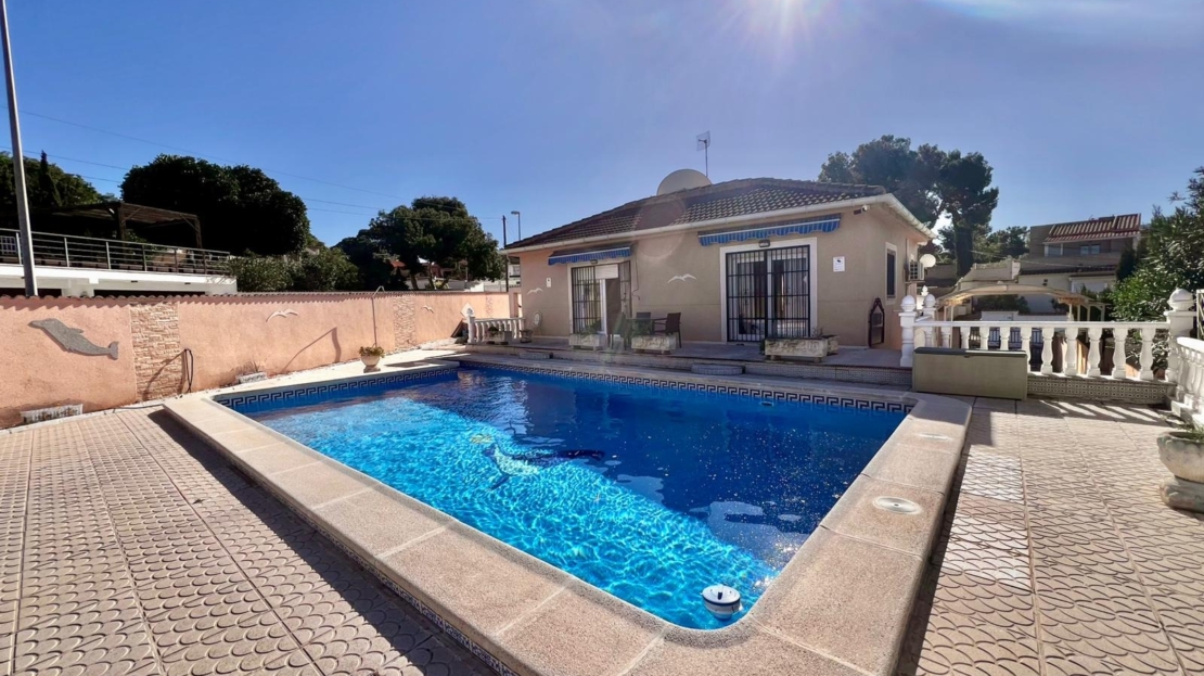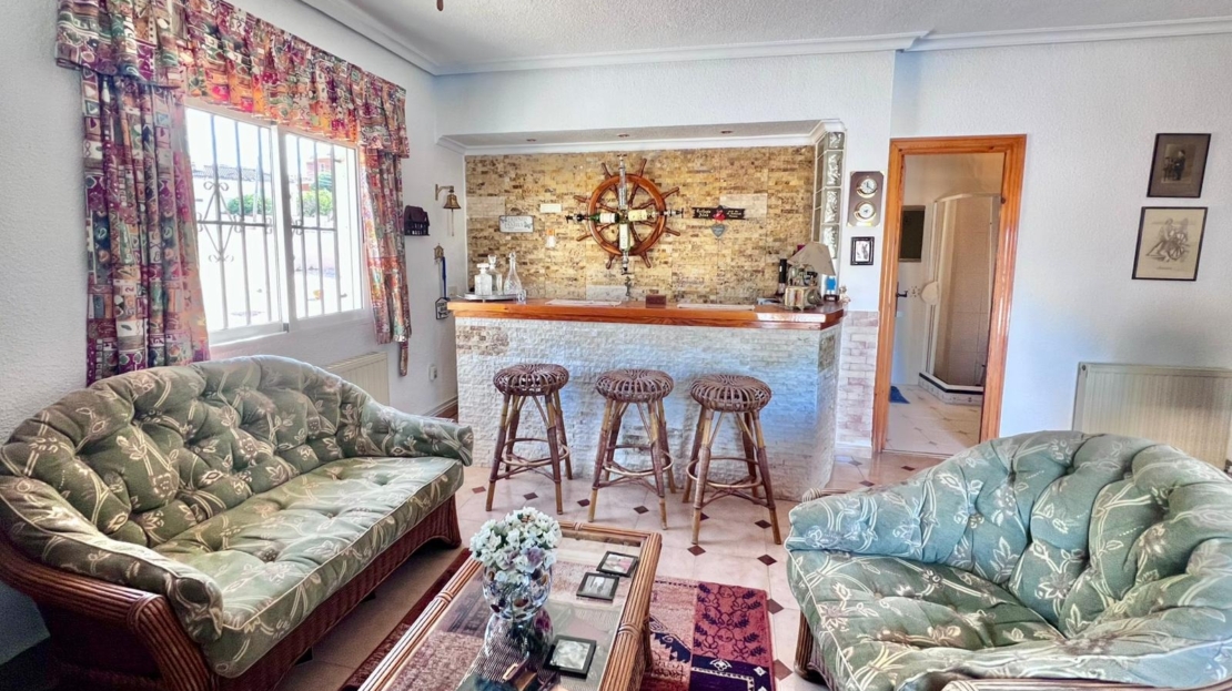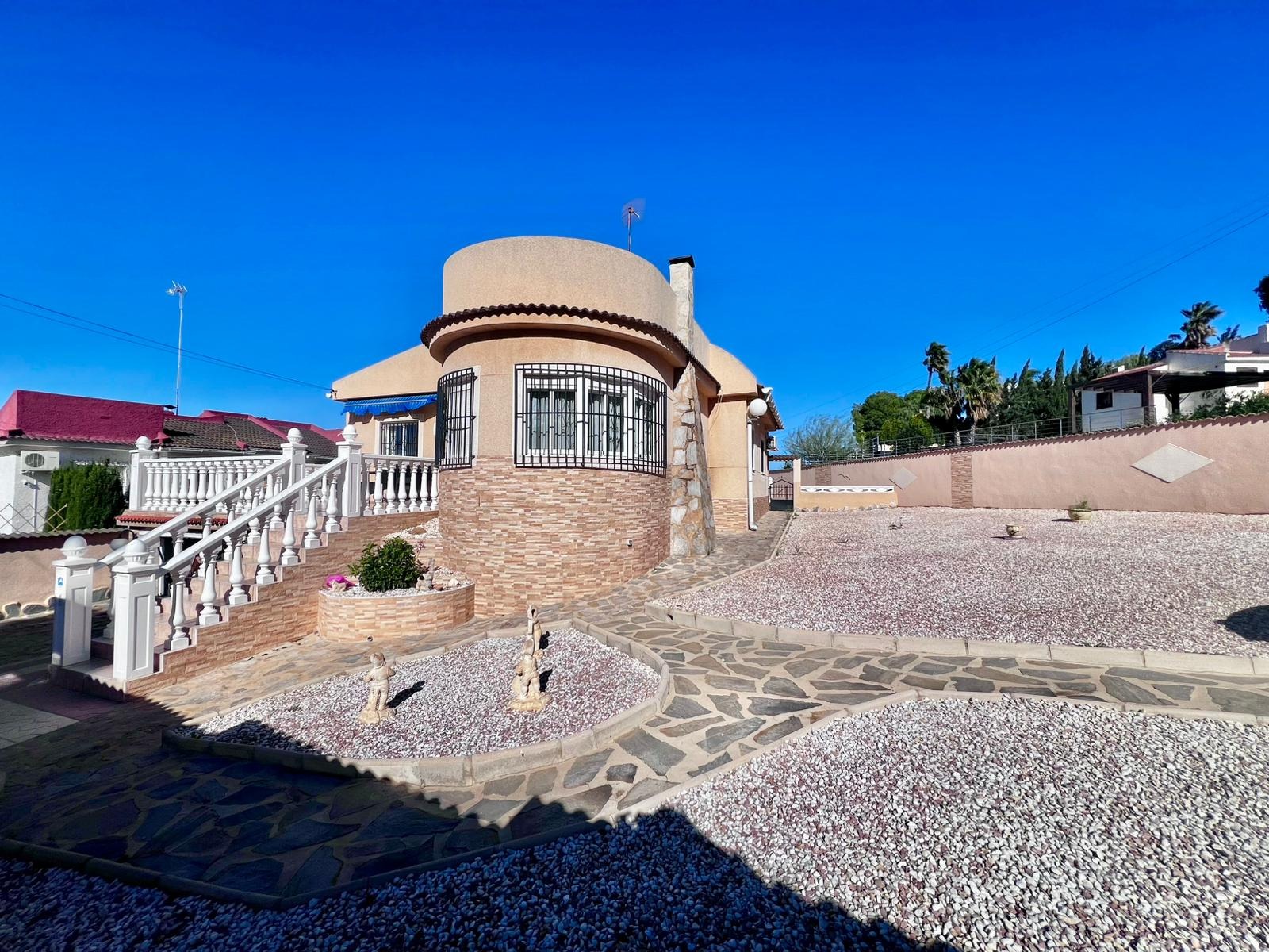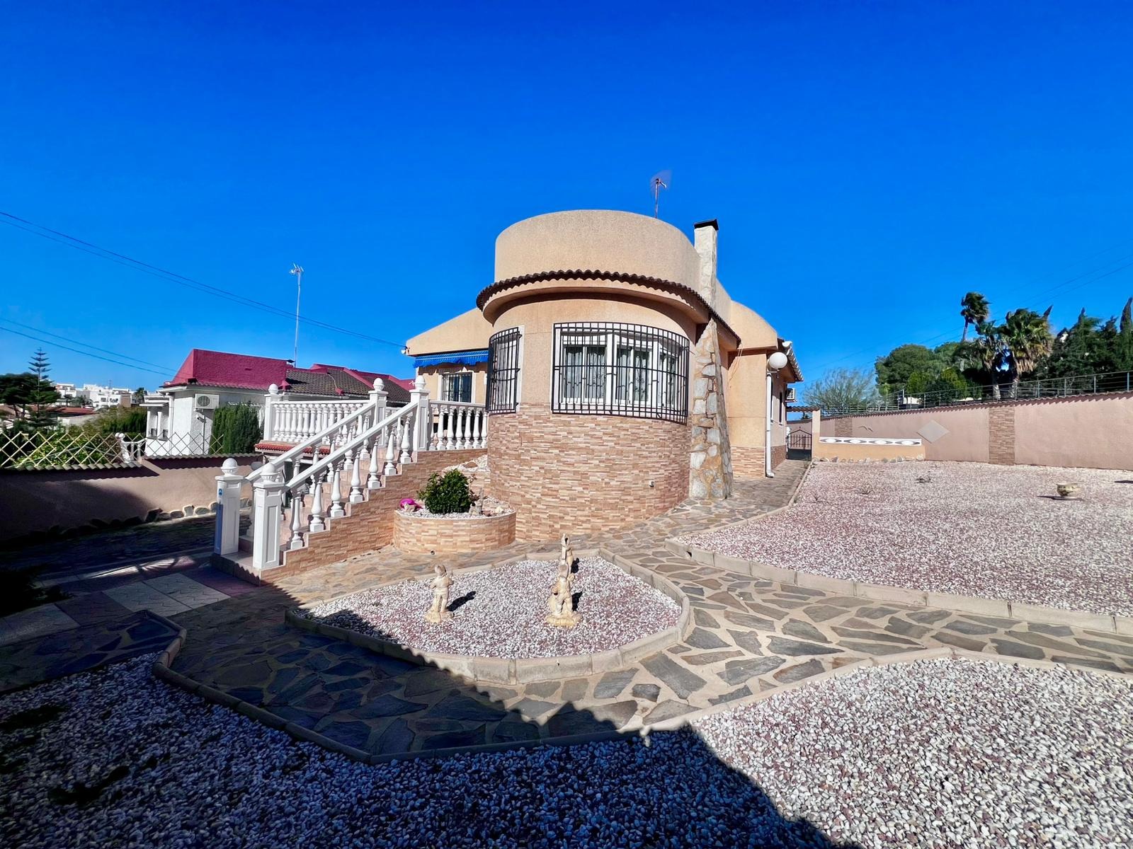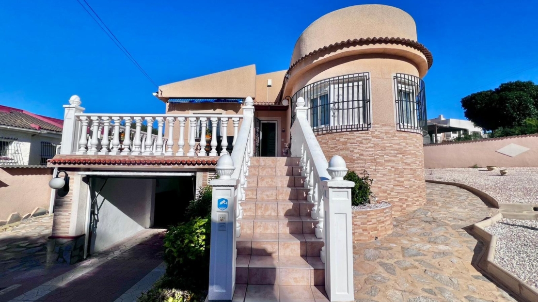 Espectacular villa independiente de 144 m2 construidos sobre una amplia parcela en esquina de 800 m2, perfecta para disfrutar de privacidad, espacio exterior y el mejor clima mediterráneo.~~La vivienda dispone de 2 dormitorios y 2 baños, con la ventaja de que los dormitorios son de gran tamaño, ofreciendo la posibilidad de crear más habitaciones según necesidades. Cuenta con dos amplios salones con chimenea, ideales para el confort en cualquier época del año, además de cocina independiente totalmente funcional.~~En el exterior encontrarás un acogedor porche, piscina privada, zona de barbacoa y amplias áreas para ocio o jardín. También incluye garaje en sótano y aire acondicionado.~~Sobre la zona: Los Balcones es una de las áreas residenciales más demandadas de Torrevieja, tranquila y bien comunicada, cercana a servicios, hospitales, supermercados y a pocos minutos de las playas y del centro comercial Zenia Boulevard.~~Una propiedad con muchísimo potencial, ideal tanto como residencia habitual como inversión.
