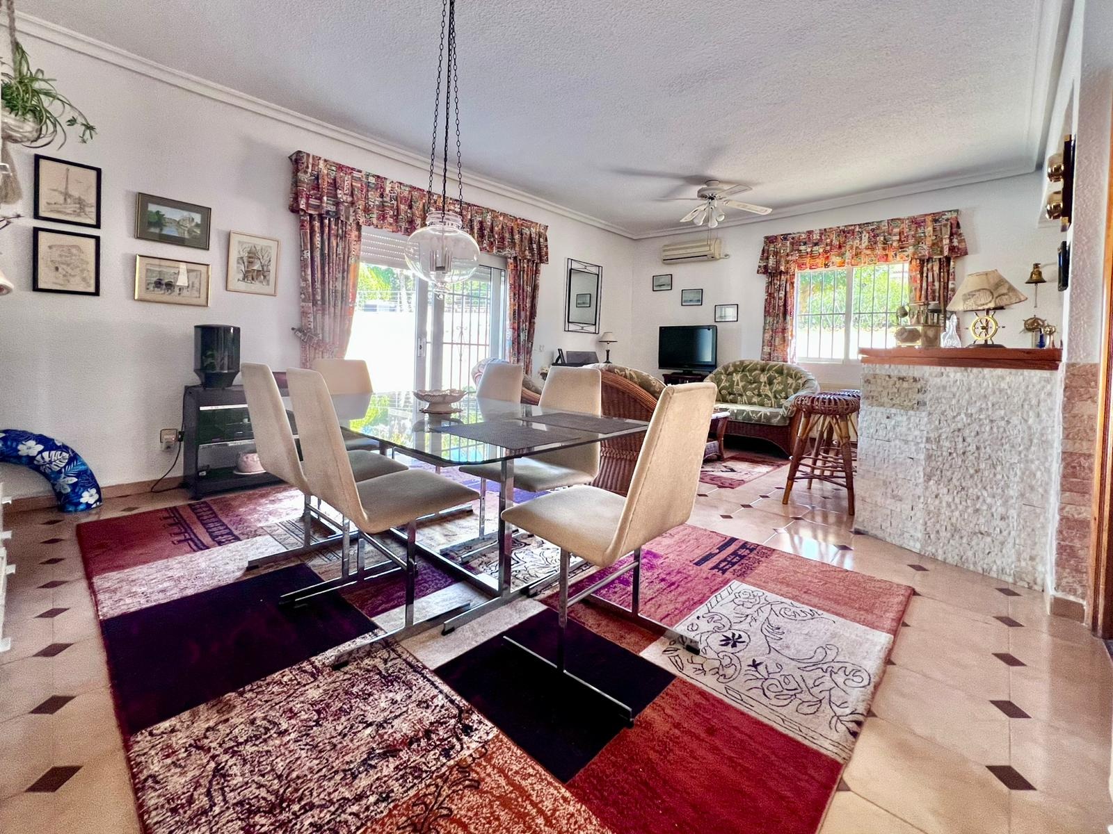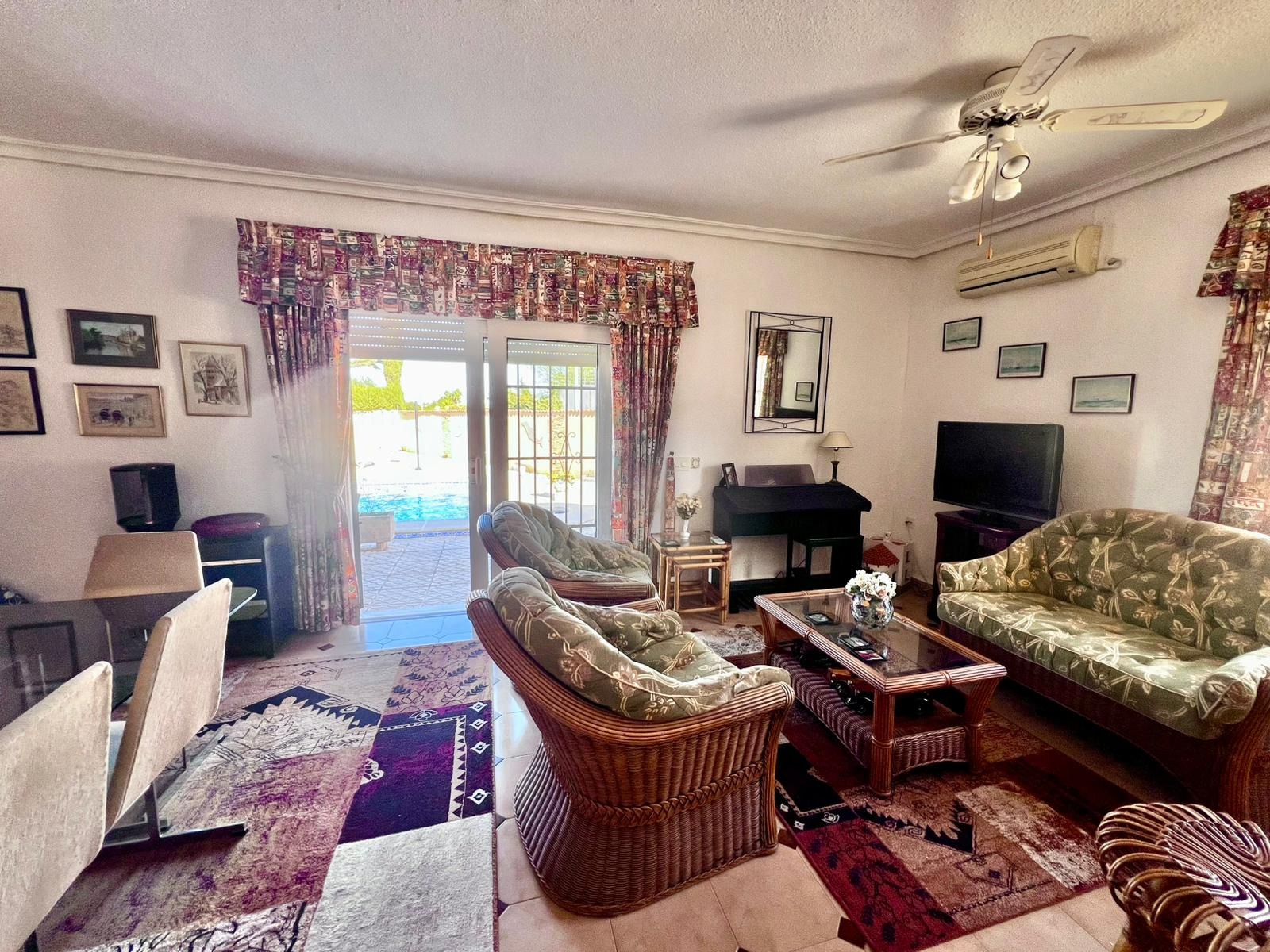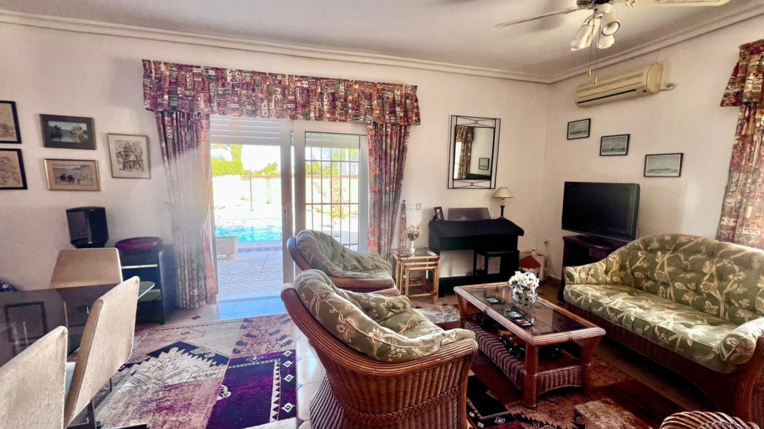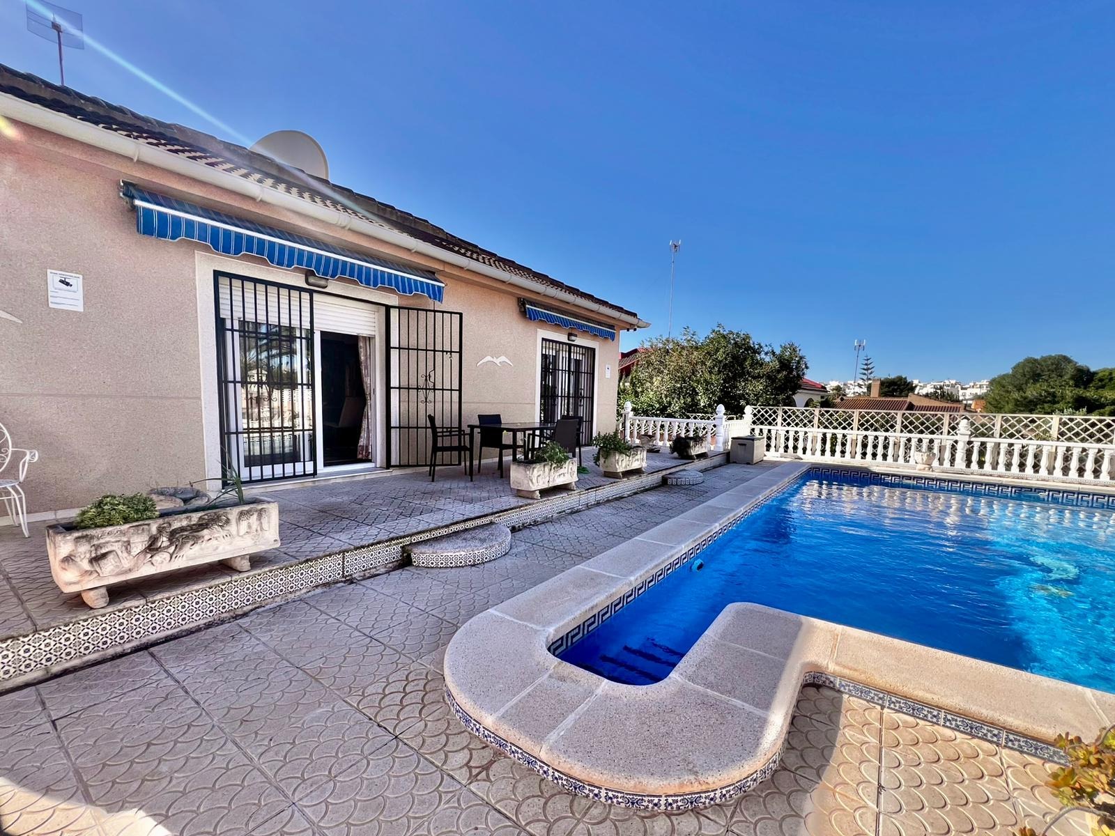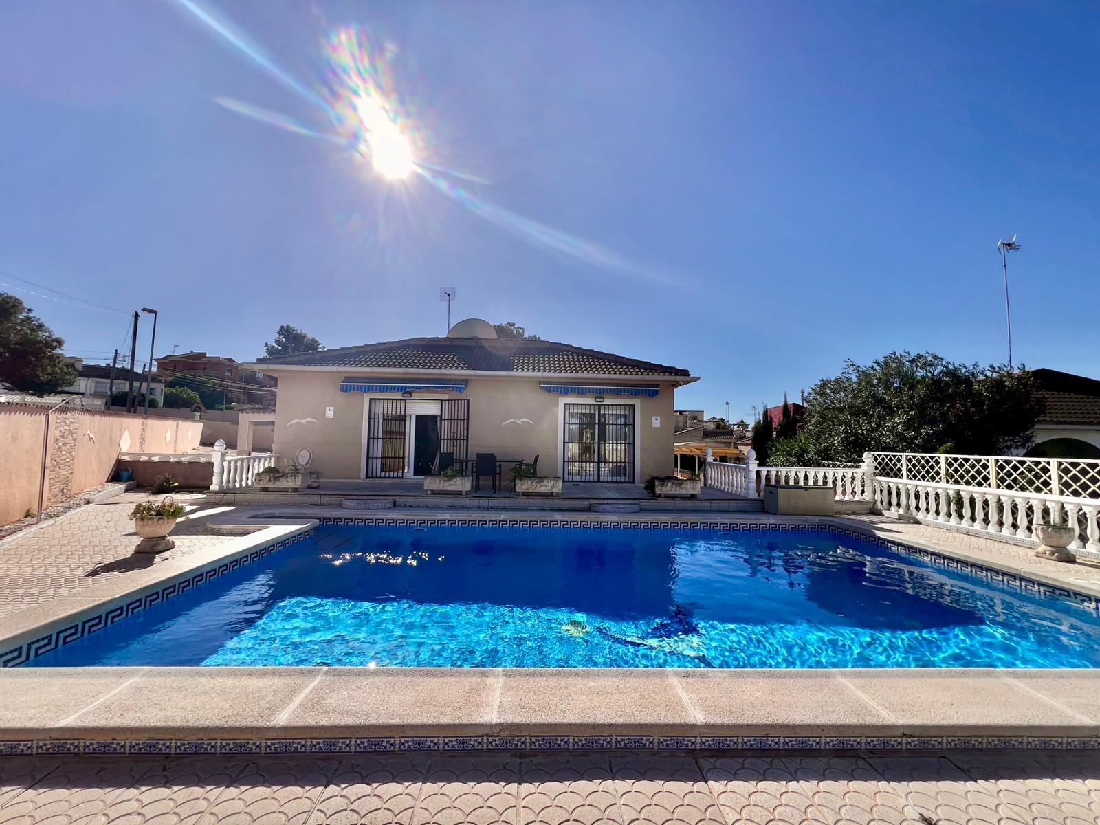 Espectacular villa independiente de 144 m2 construidos sobre una amplia parcela en esquina de 800 m2, perfecta para disfrutar de privacidad, espacio exterior y el mejor clima mediterráneo.~~La vivienda dispone de 2 dormitorios y 2 baños, con la ventaja de que los dormitorios son de gran tamaño, ofreciendo la posibilidad de crear más habitaciones según necesidades. Cuenta con dos amplios salones con chimenea, ideales para el confort en cualquier época del año, además de cocina independiente totalmente funcional.~~En el exterior encontrarás un acogedor porche, piscina privada, zona de barbacoa y amplias áreas para ocio o jardín. También incluye garaje en sótano y aire acondicionado.~~Sobre la zona: Los Balcones es una de las áreas residenciales más demandadas de Torrevieja, tranquila y bien comunicada, cercana a servicios, hospitales, supermercados y a pocos minutos de las playas y del centro comercial Zenia Boulevard.~~Una propiedad con muchísimo potencial, ideal tanto como residencia habitual como inversión.