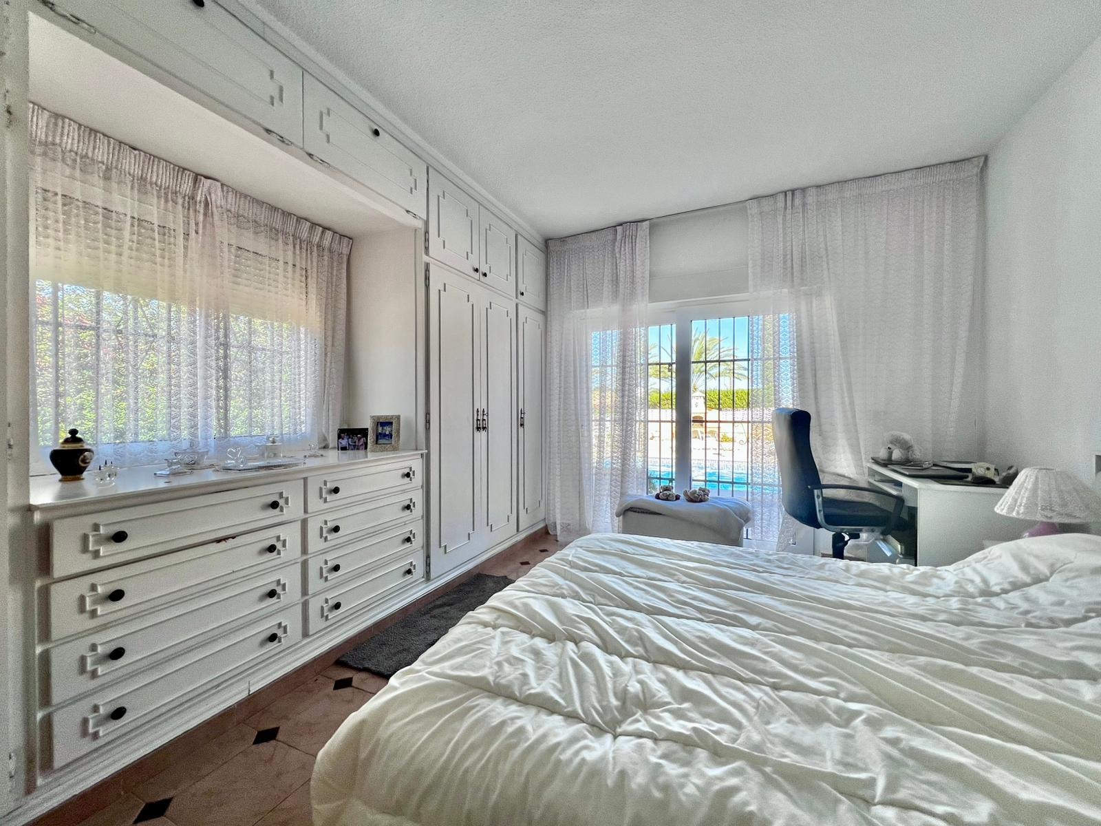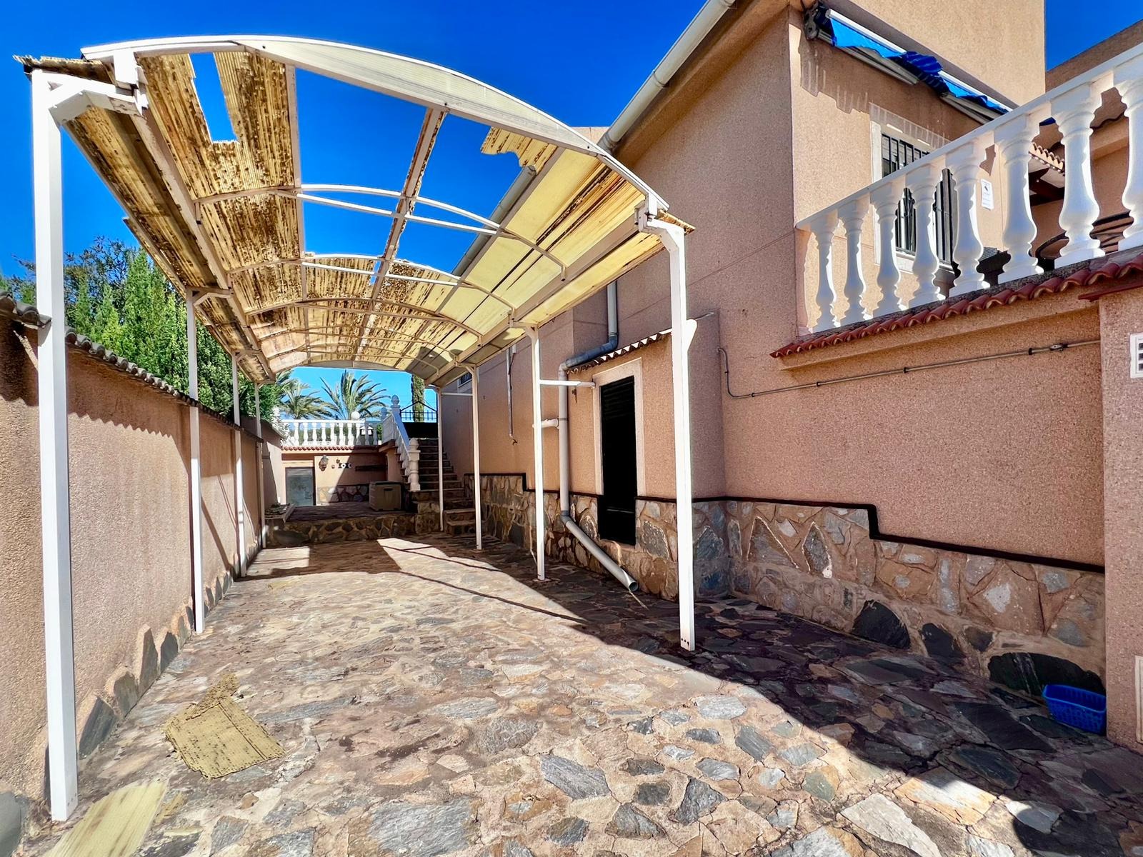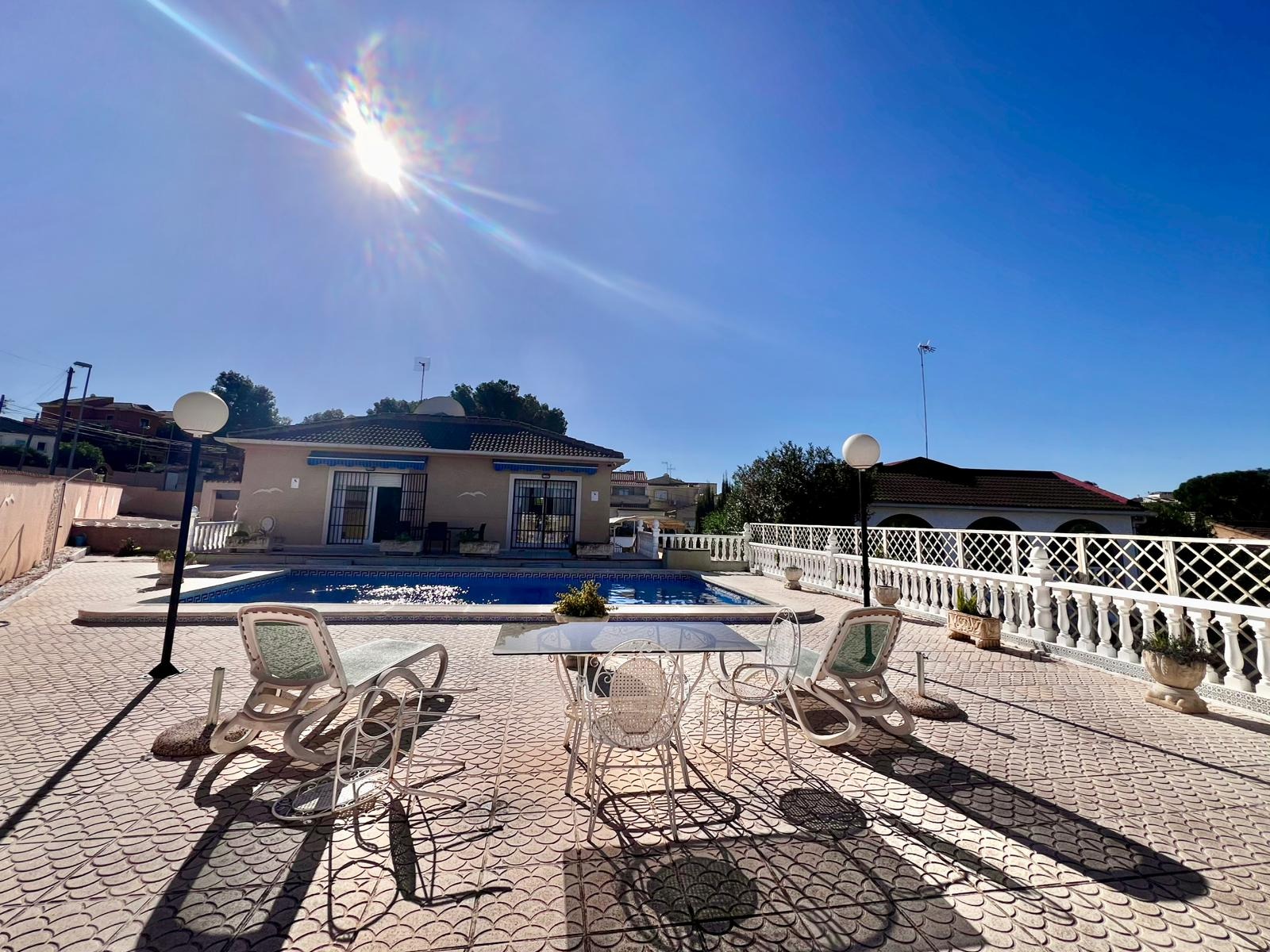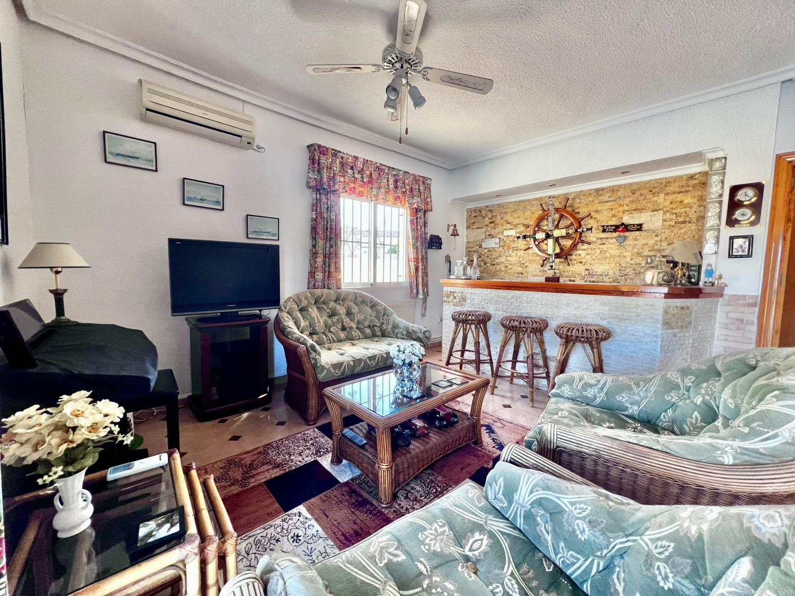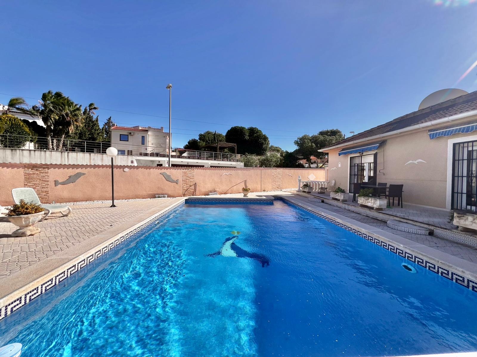 Espectacular villa independiente de 144 m2 construidos sobre una amplia parcela en esquina de 800 m2, perfecta para disfrutar de privacidad, espacio exterior y el mejor clima mediterráneo.~~La vivienda dispone de 2 dormitorios y 2 baños, con la ventaja de que los dormitorios son de gran tamaño, ofreciendo la posibilidad de crear más habitaciones según necesidades. Cuenta con dos amplios salones con chimenea, ideales para el confort en cualquier época del año, además de cocina independiente totalmente funcional.~~En el exterior encontrarás un acogedor porche, piscina privada, zona de barbacoa y amplias áreas para ocio o jardín. También incluye garaje en sótano y aire acondicionado.~~Sobre la zona: Los Balcones es una de las áreas residenciales más demandadas de Torrevieja, tranquila y bien comunicada, cercana a servicios, hospitales, supermercados y a pocos minutos de las playas y del centro comercial Zenia Boulevard.~~Una propiedad con muchísimo potencial, ideal tanto como residencia habitual como inversión.
