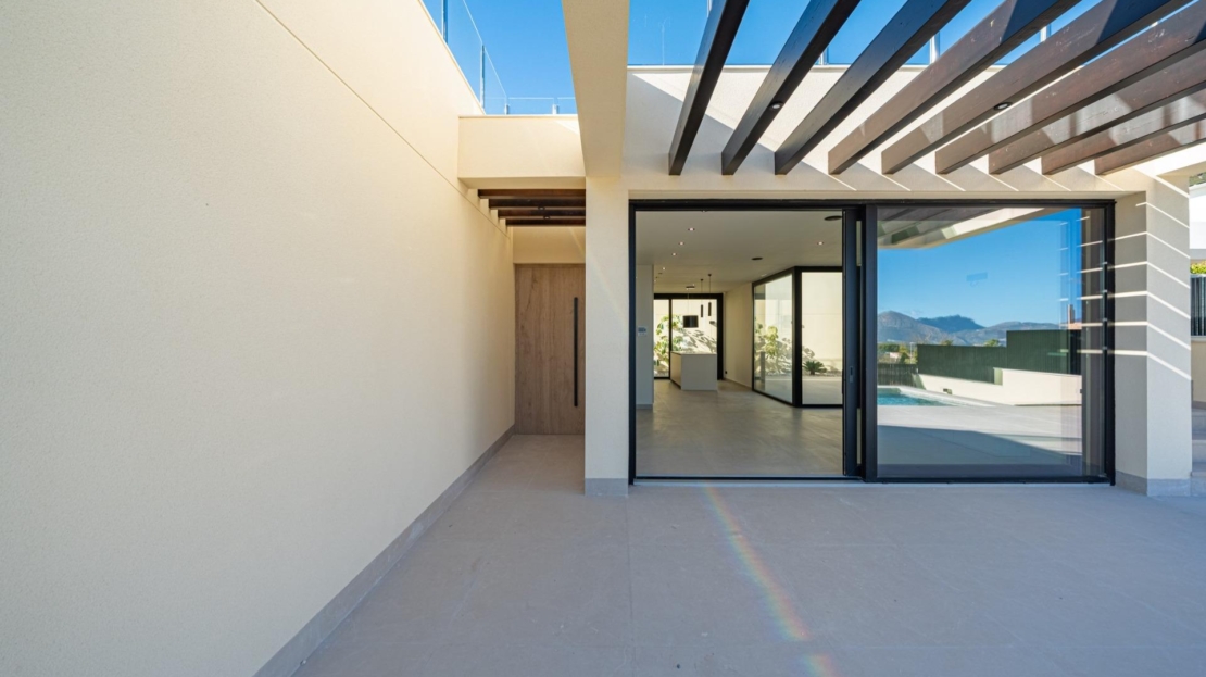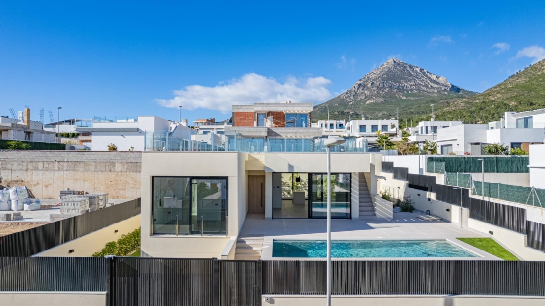 Villa nueva llave en mano con vistas al mar en La Alberca PolopVilla moderna de lujo en un entorno natural de montaña Esta villa contemporánea llave en mano se encuentra en La Alberca, una tranquila zona residencial de Polop, rodeada de bosques y montañas. Situada en un entorno elevado, la propiedad disfruta de vistas panorámicas al mar Mediterráneo, las montañas y el centro histórico de Polop. La villa ofrece privacidad, tranquilidad y excelentes conexiones con la costa y las localidades cercanas.Polop es un encantador pueblo de la comarca de la Marina Baixa, en la Costa Blanca, conocido por su carácter tradicional y su entorno natural. La propiedad está cerca de todos los servicios de La Nucía, incluyendo tiendas, restaurantes, centros deportivos y colegios, mientras que las playas y las animadas localidades costeras se encuentran a poca distancia en coche.Amplia distribución entre la planta principal, el sótano y el solárium La villa se distribuye en una planta principal, un sótano y un solárium en la azotea, lo que ofrece un amplio espacio habitable y flexibilidad.En la planta principal, un acogedor vestíbulo de entrada con armario empotrado conduce a dos dormitorios en suite, incluida una suite principal con puertas ventanas elevables que dan a un balcón Juliette y a una terraza. La sala de estar y el comedor de planta abierta conectan a la perfección con una terraza cubierta con pérgola y una piscina privada de agua salada.El sótano cuenta con dos dormitorios adicionales con baño, grandes ventanas, una sala de juegos o cine flexible con conexiones de agua y electricidad para una zona de bar, un lavadero totalmente equipado con electrodomésticos Haier y dos cuartos técnicos.El solárium de la azotea ofrece un amplio espacio al aire libre con vistas panorámicas al mar y está preparado para la futura instalación de paneles solares. Una cocina al aire libre, múltiples armarios y un jardín de estilo mediterráneo con riego automático completan el exterior.Características de alta gama y eficiencia energética Esta villa destaca por sus acabados de primera calidad y sus instalaciones avanzadas, entre las que se incluyen:Isla de cocina central con electrodomésticos BOSCH integrados Encimeras de piedra natural en interiores y exteriores Preinstalación de calefacción por suelo radiante Sistema de aire acondicionado aerotérmico Mitsubishi Clasificación de eficiencia energética Clase A Preinstalación para sistema domótico Piscina de agua salada con calefacción opcional Aparcamiento privado para dos vehículosLas grandes ventanas con cristales de protección solar maximizan la luz natural y garantizan el confort y la seguridad.Excelente ubicación y distancias Centro de Polop a 2 km La Nucia a 4 km Benidorm a 12 km Altea a 10 km Playas a 10 km Villaitana Golf a 14 km Aeropuerto de Alicante a 65 kmAsegúrese la casa de sus sueños en Polop Esta excepcional villa llave en mano combina privacidad, diseño y vistas panorámicas en una de las zonas más atractivas del interior de la Costa Blanca. Póngase en contacto con nosotros hoy mismo para concertar una visita privada y hacer de esta lujosa villa en La Alberca Polop su nuevo hogar.