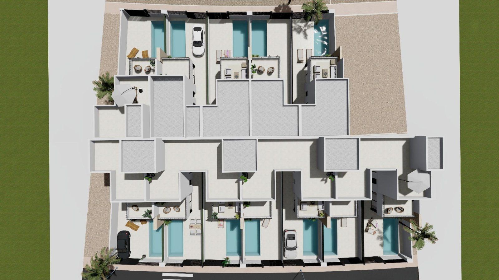 Detta projekt består av 12 villor med 3 sovrum och 2/3 badrum, inklusive privat pool, terrass och solarium med sommarkök i utvalda bostäder.