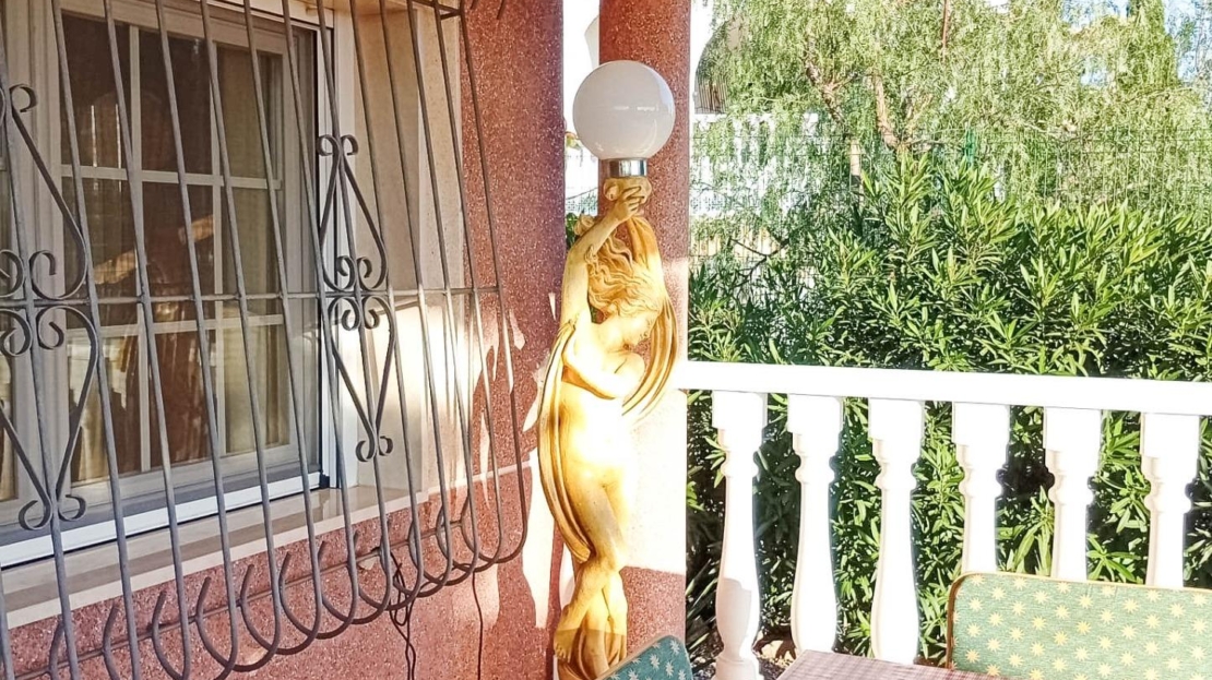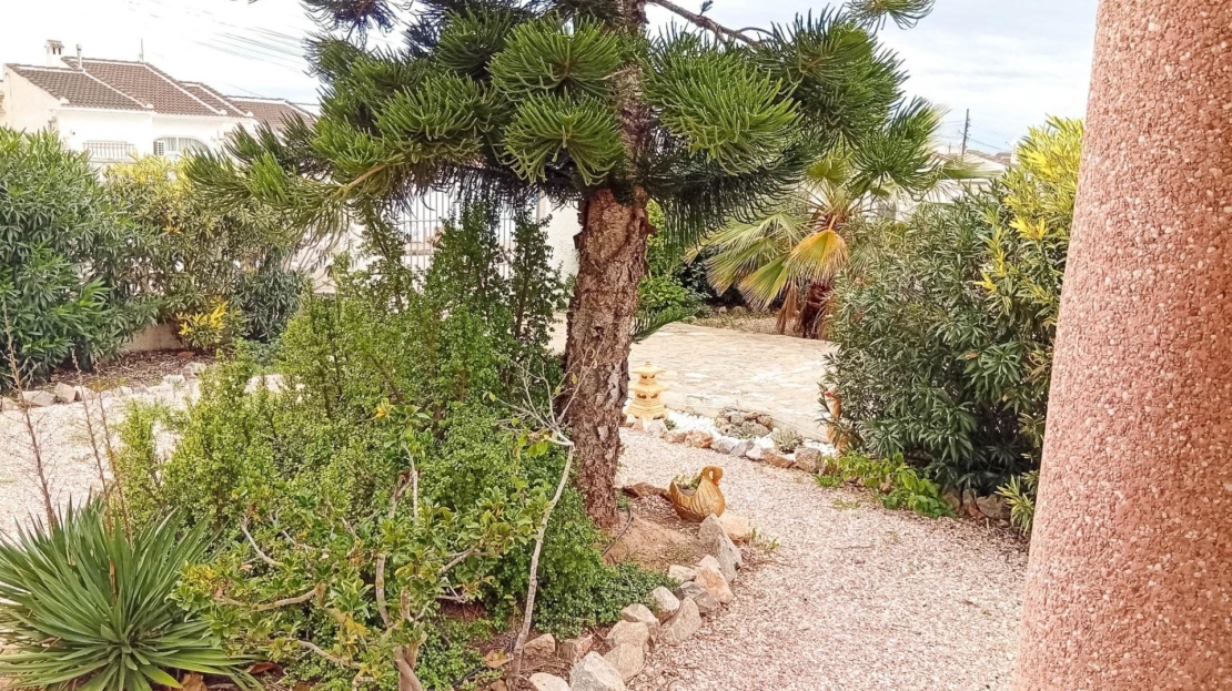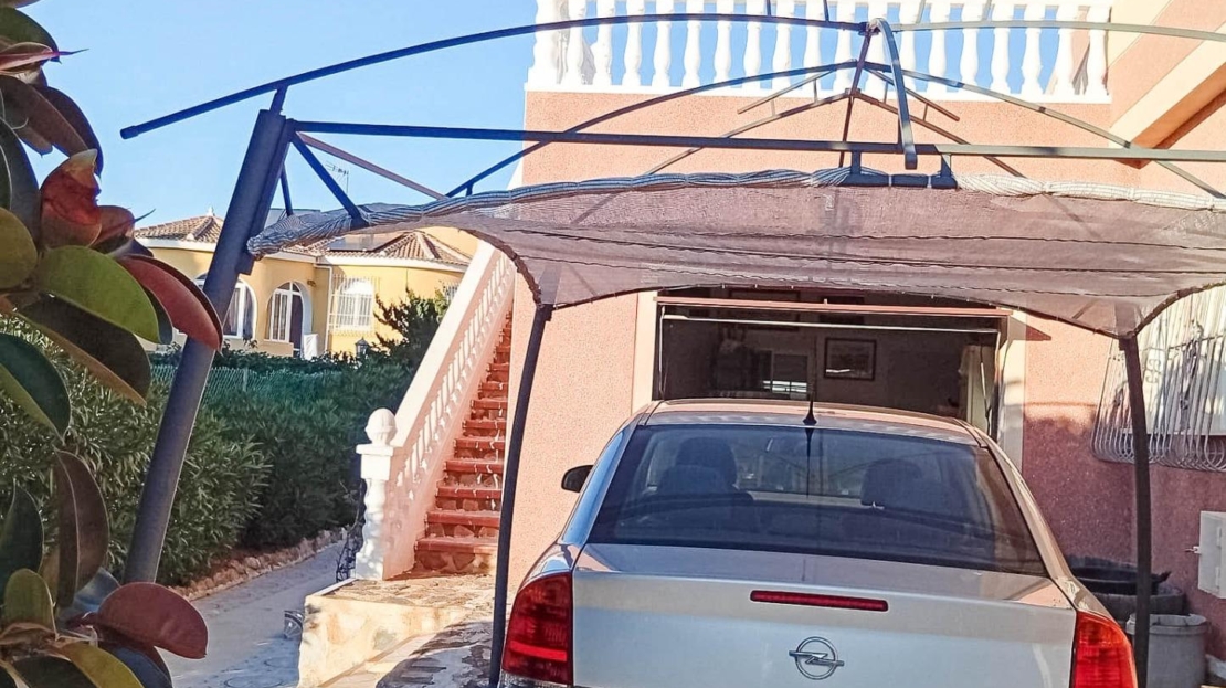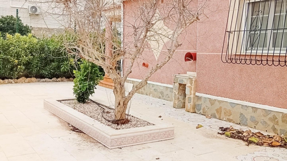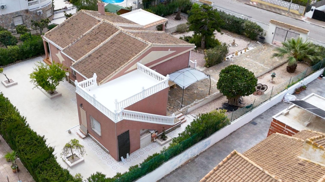 Till salu: stort fristående hus med 4 sovrum och 2 kompletta badrum, boyta på 156 m², beläget på en välskött tomt på 816 m² med trädgård och separat garage, i det attraktiva området San Luis (Avenida Landete), Torrevieja. Huset byggdes 1990 och är i ett plan, vilket ger hög boendekomfort. Det har ett privat solarium med panoramautsikt över Rosa Lagunen samt en stor entréterrass. Tack vare sydläge är huset fyllt med naturligt ljus hela dagen. Planlösning och fördelar: – Stenlagd entréterrass (20 m²) – Ljust vardagsrum med fullt utrustat öppet kök – Båge mellan kök och vardagsrum med utgång till trädgården – Bred hall till sovrumsdelen – 4 separata sovrum med inbyggda garderober – 135 cm sängar i varje sovrum – 2 kompletta badrum – Privat solarium med lagunutsikt – Stor tomt med möjlighet till pool – Separat garage Perfekt för permanentboende, semester eller uthyrningsinvestering.