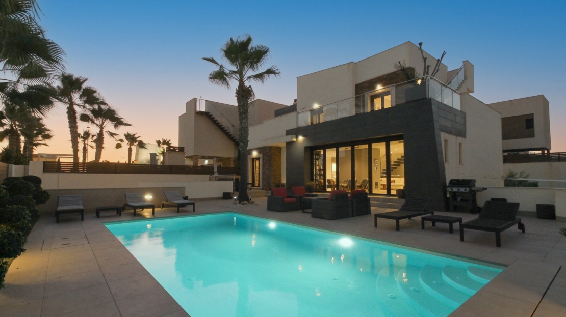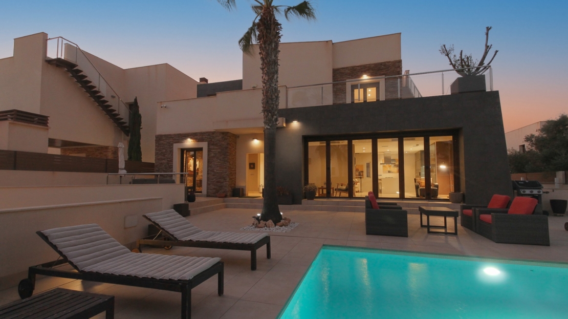 Chalet moderno con piscina, 2 plantas y sótano en excelente estadoEste exclusivo chalet independiente de dos plantas más sótano se levanta sobre una parcela de 518,80 m² y ofrece una superficie construida de 324,40 m², distribuidos de forma funcional y elegante. La vivienda se encuentra en perfecto estado de conservación, con acabados de alta calidad y un diseño pensado para disfrutar tanto del interior como del exterior.En la planta baja encontramos un amplio y luminoso salón con cocina abierta, zona de estudio y librería, un aseo, lavandería y comedor. Además, dispone de una acogedora salita con barra ideal como espacio de ocio y reuniones.La primera planta cuenta con una habitación individual perfecta para un niño y una habitación doble con baño en suite. Ambas estancias tienen acceso directo a una gran terraza con vistas a la parte delantera de la casa y a la piscina.Uno de los grandes atractivos de esta vivienda es su exclusiva azotea-solárium, un espacio excepcional con gran privacidad, perfecto para tomar el sol, crear una zona chill out o simplemente relajarse contemplando las vistas.En el sótano encontramos un espectacular salón para instalar un cine en casa con pantalla grande, zona de dardos, dos habitaciones dobles y un baño completo. Este nivel incluye además un amplio garaje con capacidad para dos coches, dos cuartos de almacenamiento y un baño exterior pensado para dar servicio a la piscina. En el exterior del garaje hay espacio adicional para aparcar otro coche sin techado.En el exterior, la parcela alberga una piscina privada de 8×4 metros (32 m²), rodeada de espacio para disfrutar del sol y del clima mediterráneo.Este chalet combina comodidad, estilo y funcionalidad en cada rincón, ideal tanto como residencia habitual como casa de vacaciones. Su distribución, las zonas de ocio y el perfecto estado de conservación lo convierten en una oportunidad única.
