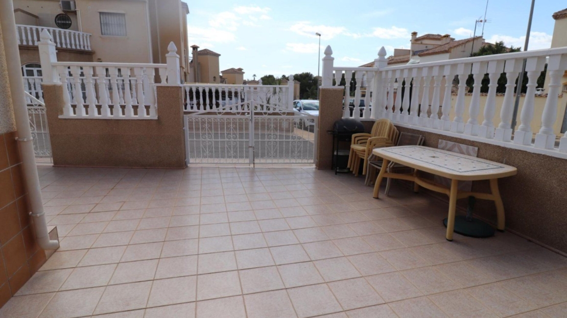 Mycket vackert hus beläget i ett lugnt område i Las Filipinas, Orihuela Costa. Denna fastighet är byggd i två plan och erbjuder en bekväm och praktisk planlösning. På bottenvåningen finns ett fullt utrustat kök som vetter mot ett mysigt vardagsrum, ett sovrum samt ett badrum. På övervåningen finns ytterligare två sovrum – varav ett har egen balkong – samt ett andra badrum. Från denna våning har man tillgång till en terrass som leder upp till ett rymligt solarium, där det också finns ett förråd.Utomhusytorna är mycket trevliga, med flera terrasser inklusive en täckt, en jacuzzi för avkoppling, en privat parkeringsplats, extra förvaring samt en välskött trädgård. Huset är utrustat med luftkonditionering i vardagsrummet och i alla sovrum, där det även finns inbyggda garderober. Bostaden säljs fullt möblerad, är i mycket gott skick och har turistlicens, vilket gör det till ett utmärkt alternativ både som semesterbostad och som investering.Bostadsområdet erbjuder dessutom en vacker gemensam pool och en grönskande gemensam trädgård – perfekt för att njuta av det milda klimatet på Costa Blanca. Läget är idealiskt: gångavstånd till alla nödvändiga bekvämligheter, nära flera golfbanor, bara 6 kilometer från Costa Blancas fantastiska stränder och 55 kilometer från Alicantes flygplats. Butiker och restauranger ligger cirka 1 kilometer bort, och närmaste golfbana bara 2 kilometer från huset.Med en byggyta på 90 m², en boyta på 80 m² och en tomt på 144 m² erbjuder denna bostad gott om utrymme, komfort och ett mycket bra läge. Här finns även balkong, veranda, solarium, takterrass, tvåglasfönster och alla bekvämligheter som krävs för ett permanent boende eller en härlig semesterbostad.